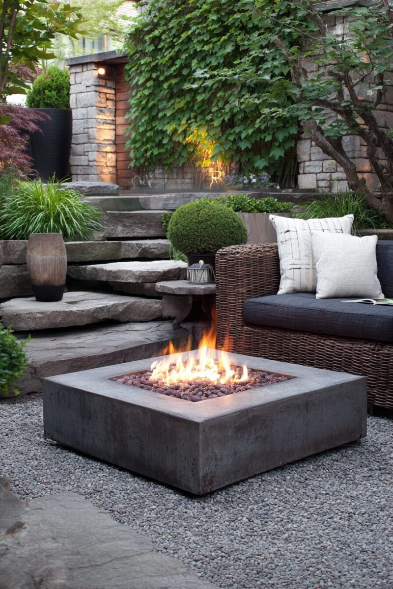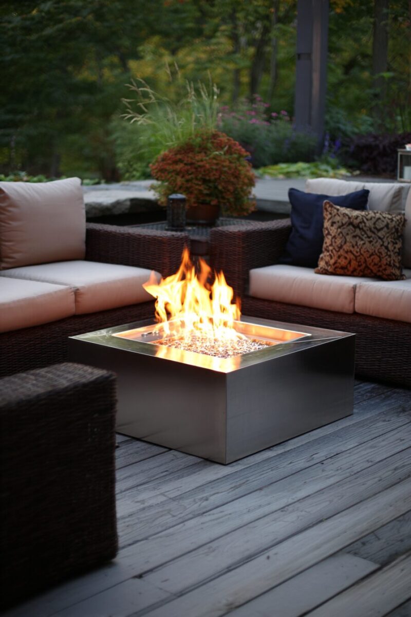 Position modern, low-profile seating around your fire bowl to complete the contemporary aesthetic while providing comfortable vantage points for enjoying the flames.