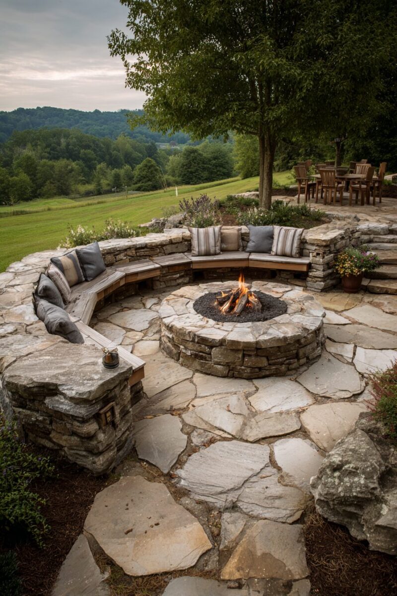 Natural stone fire pits create an irresistible focal point that seems to have emerged organically from the earth itself.