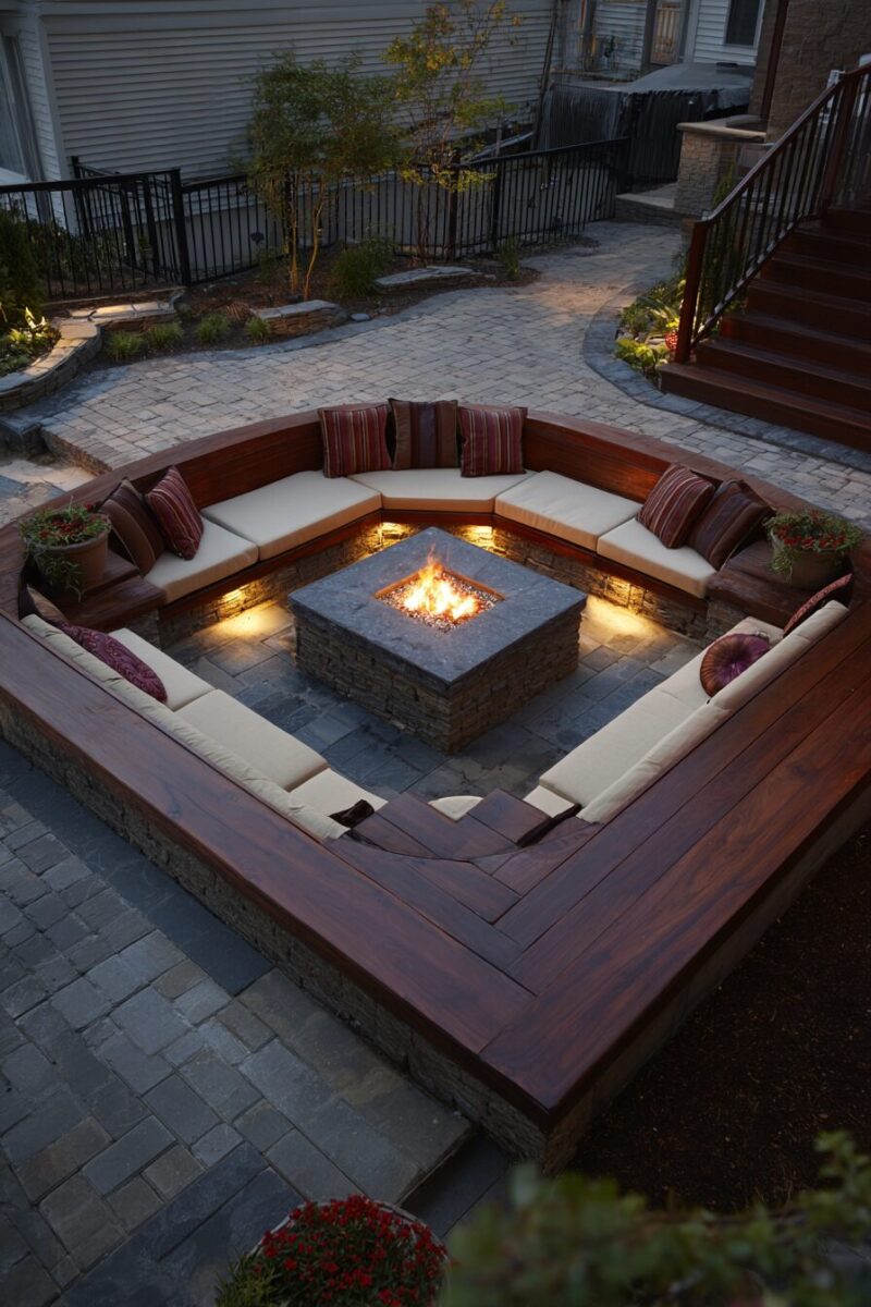 Unlike traditional fire pits where people gather in a circle, the sunken approach allows for more flexible seating arrangements with everyone enjoying optimal viewing of the central flames.