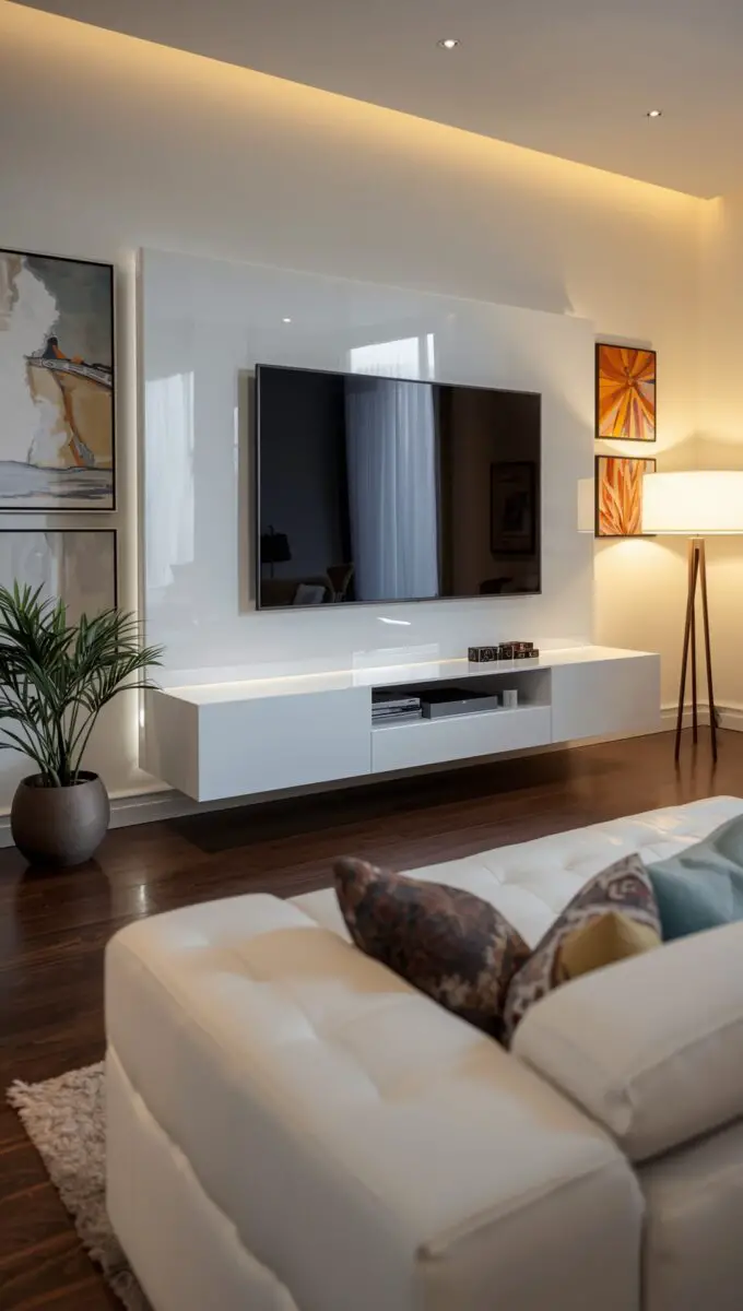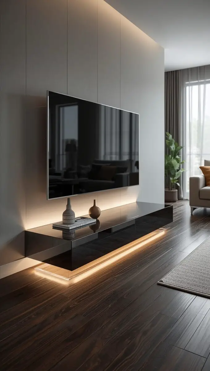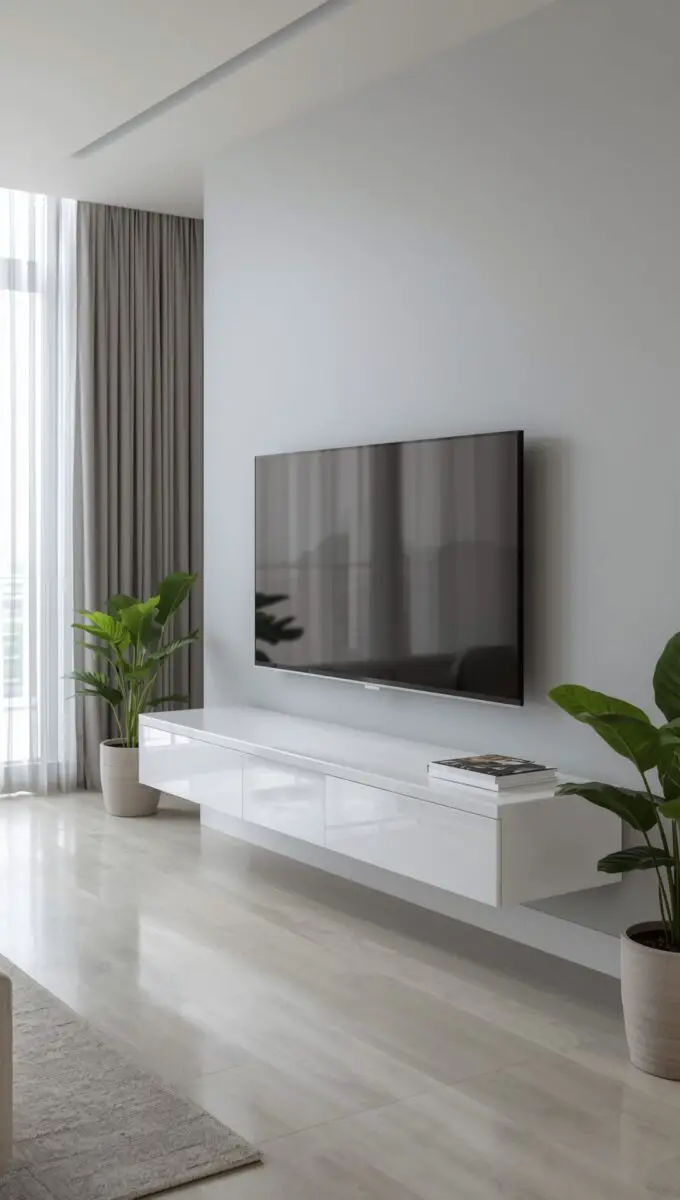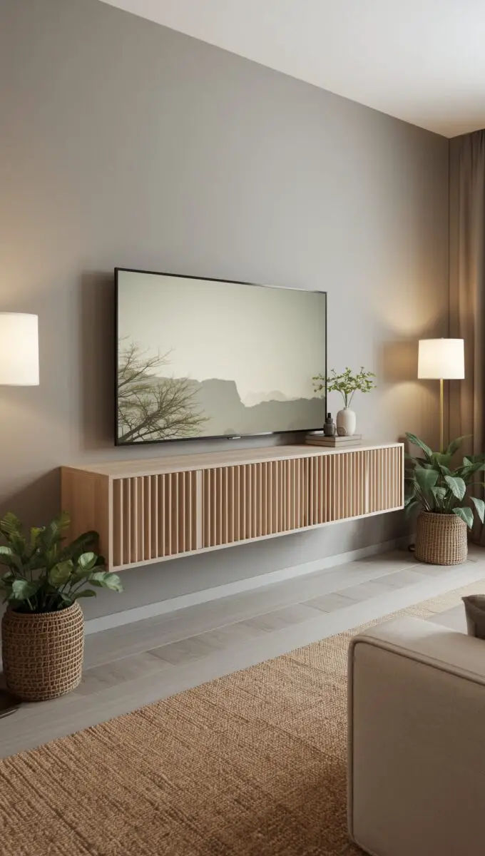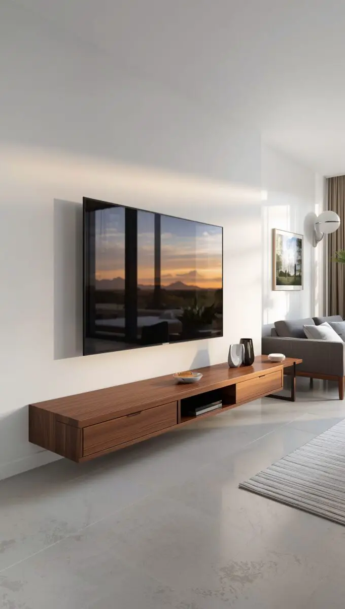 A few carefully chosen items, like a modern vase, a plant, or a set of books, can make your floating TV cabinet shine without crowding the space.