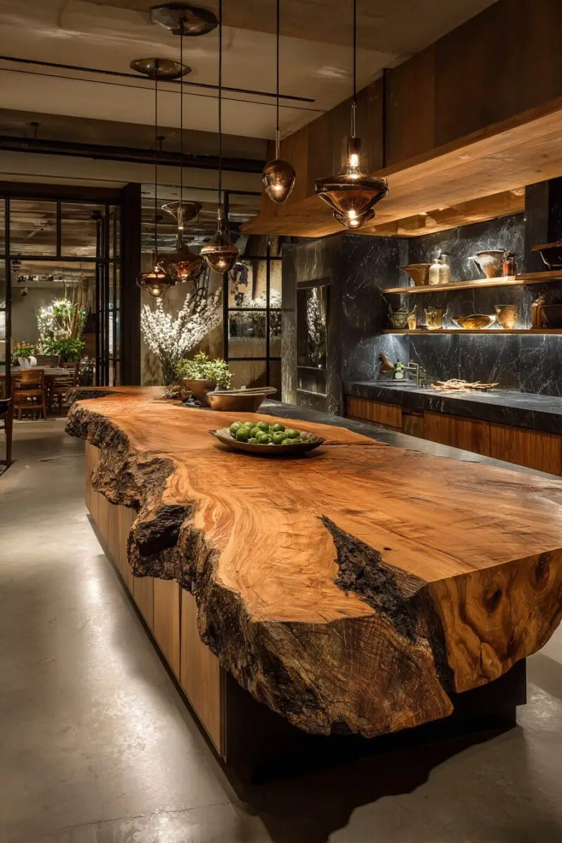 Live-Edge Wood Island That Steals the Show