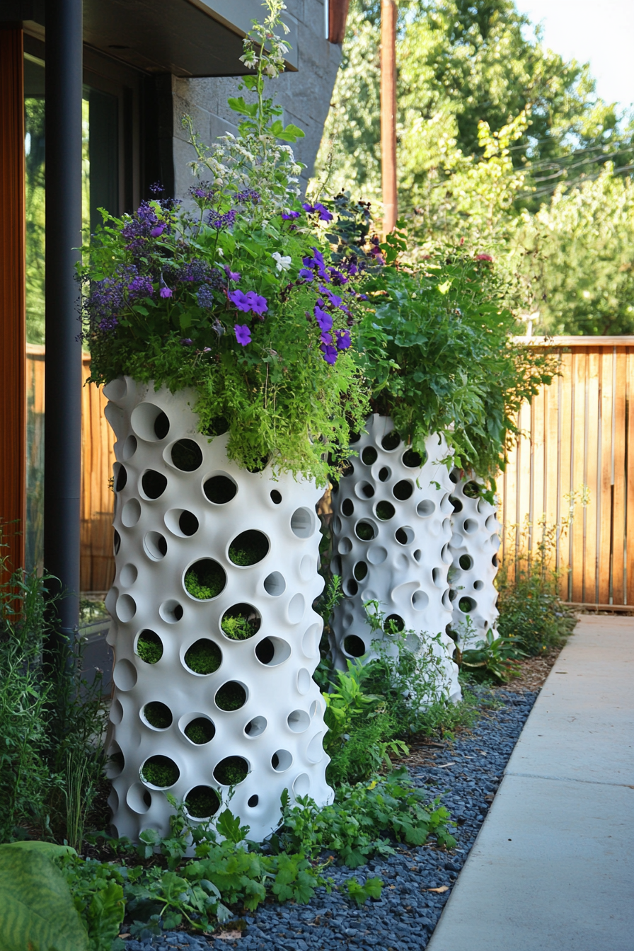 This creates a unique and eye-catching vertical garden that maximizes your growing space and adds a modern, edgy touch to your outdoor decor.