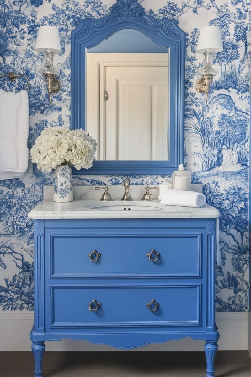 You’ll find that even small touches—like French blue cabinet fronts on a medicine cabinet or storage unit—can significantly influence the overall feel of your bathroom.