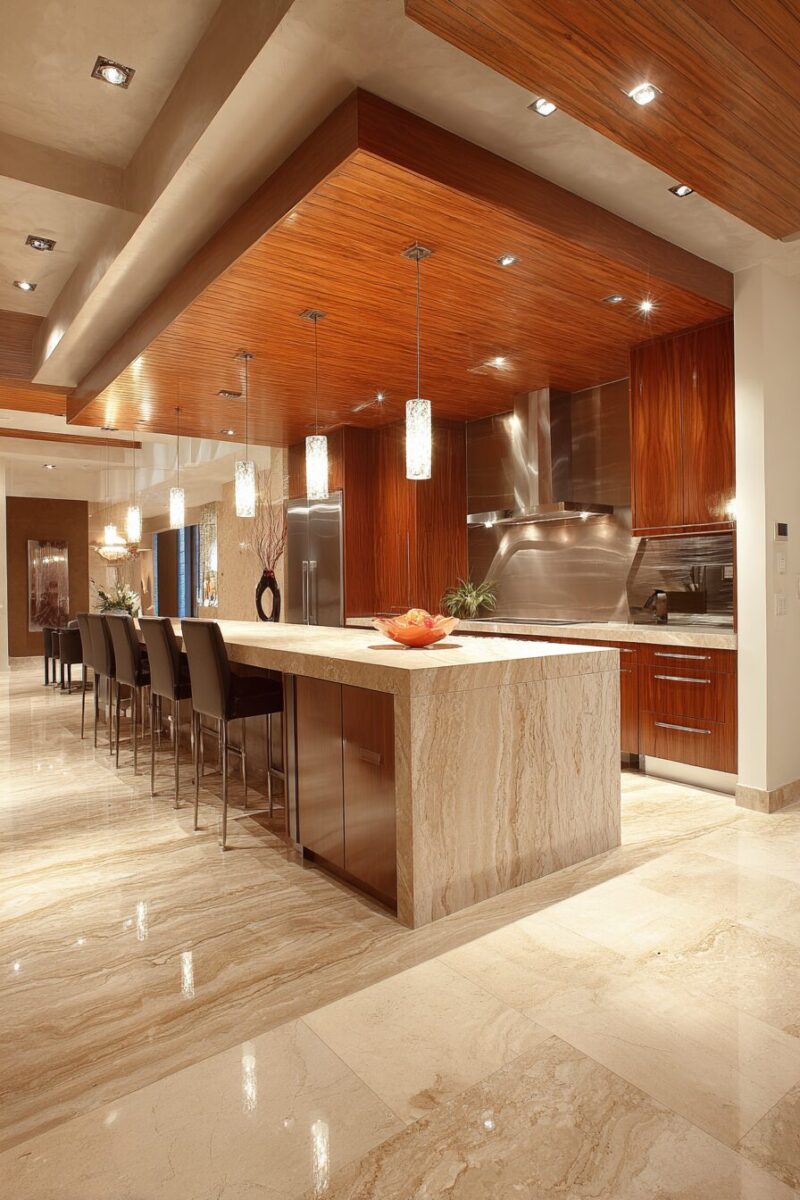 The thermal properties of limestone help maintain consistent temperatures, making it practical for both food preparation and the overall comfort of your kitchen space.