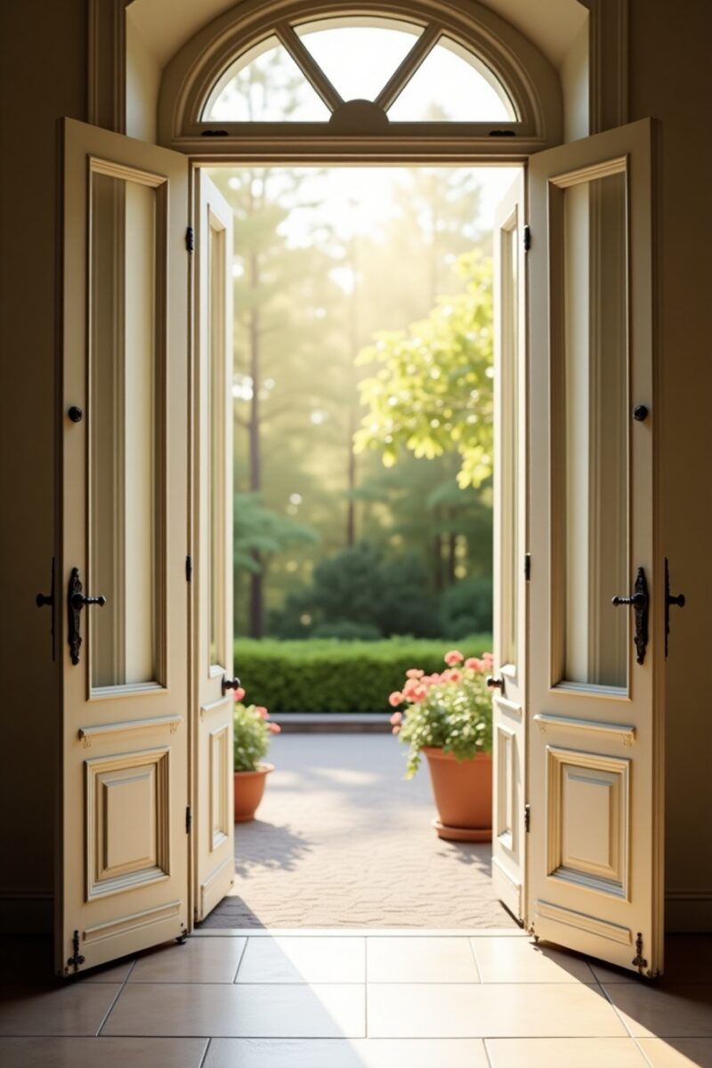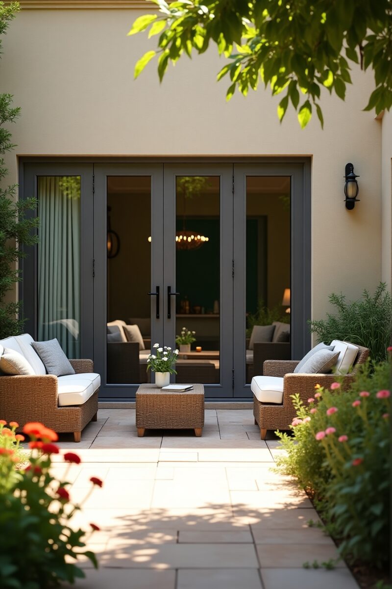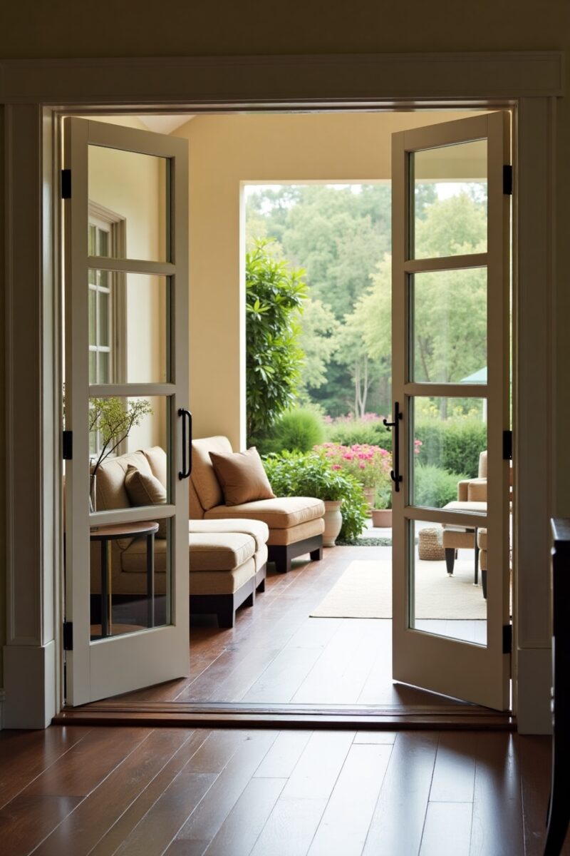 Bird feeders or water features positioned within view of your French doors create living entertainment that connects you to nature even when doors must remain closed.