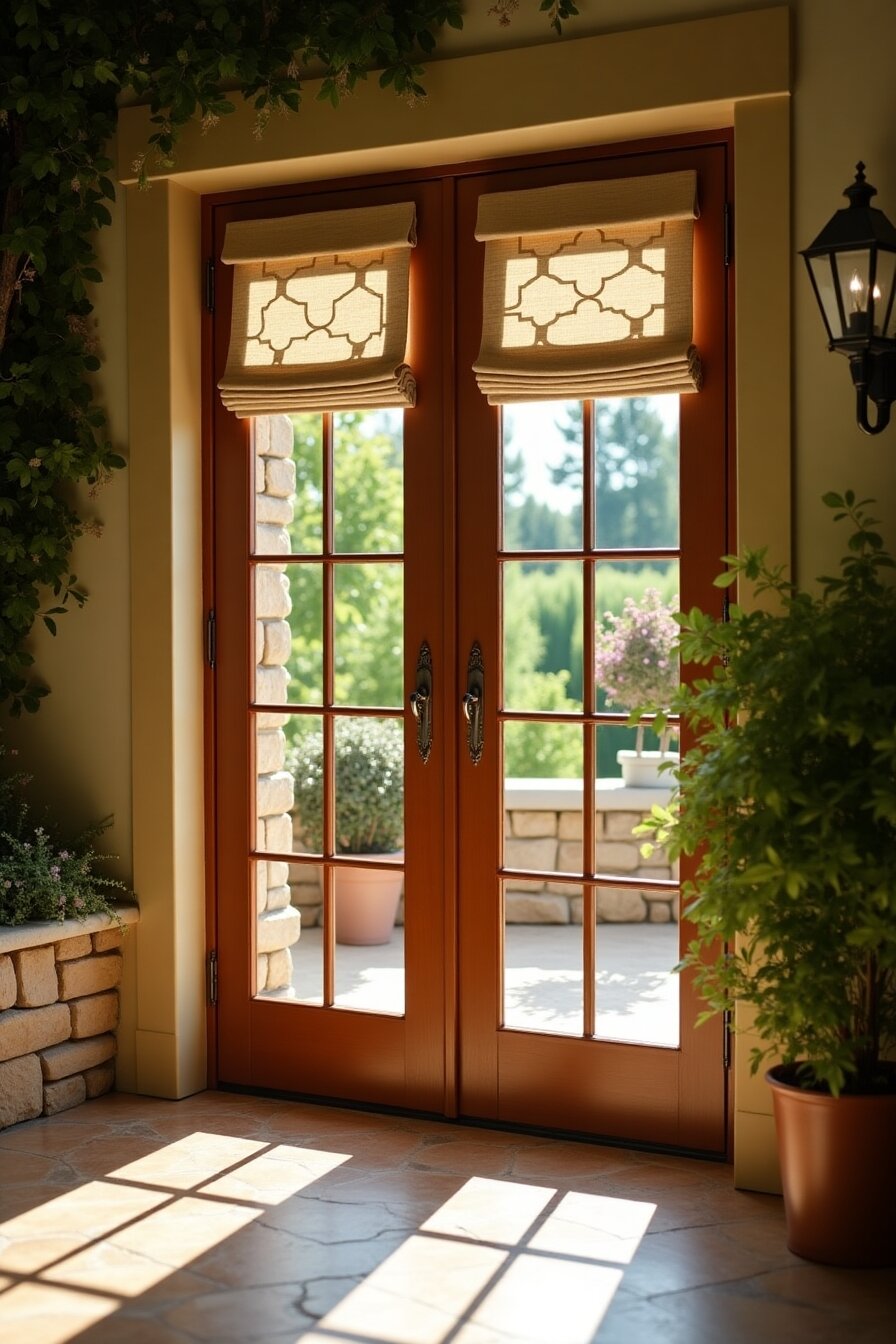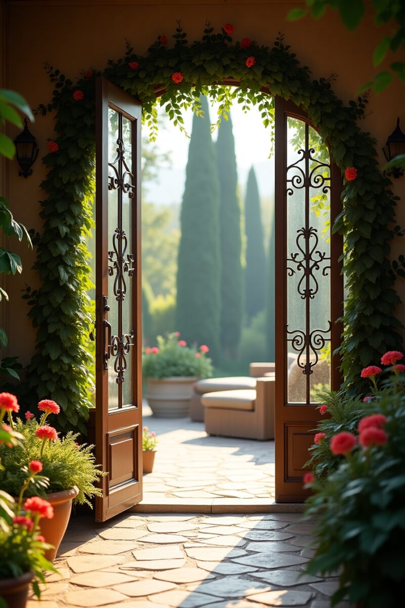 Water features like small fountains or reflecting pools near your French doors add that quintessential Mediterranean element that cools the air and soothes with gentle sounds.