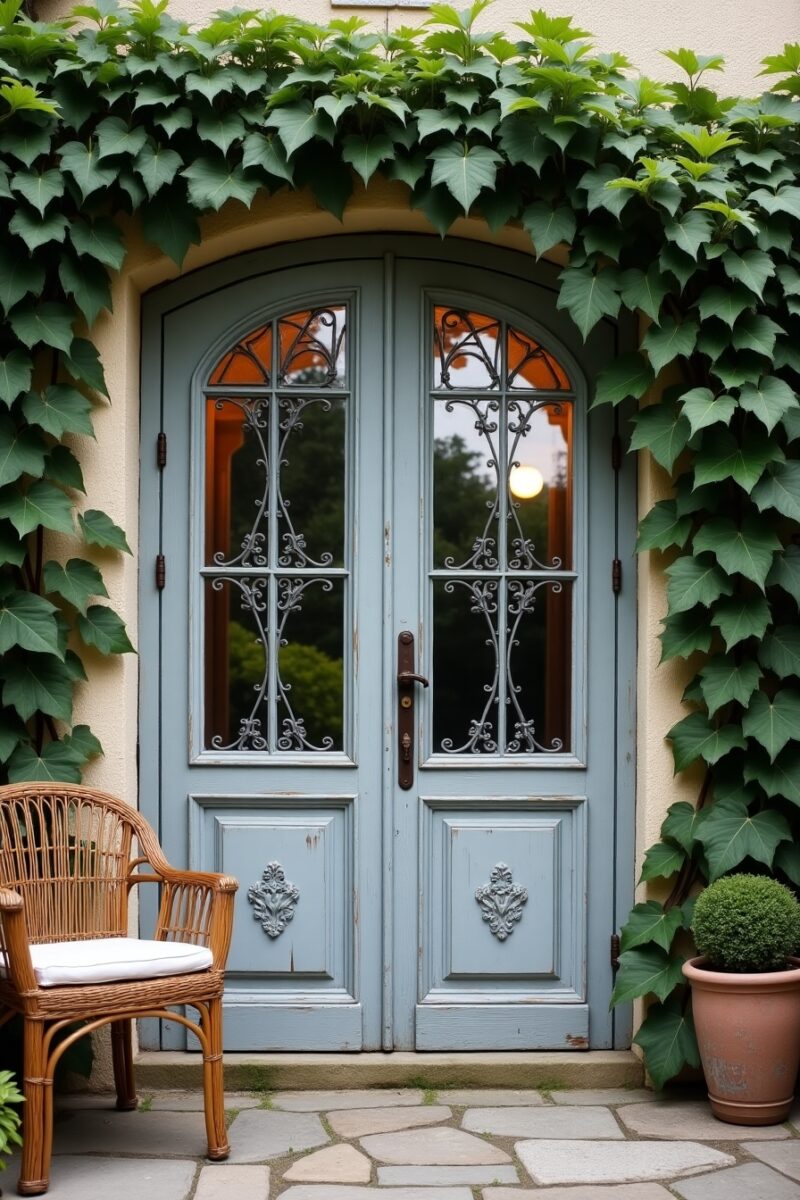 Consider painting the interior side of vintage French doors in a bold, modern color while leaving the exterior with its original patina for a playful twist on tradition.