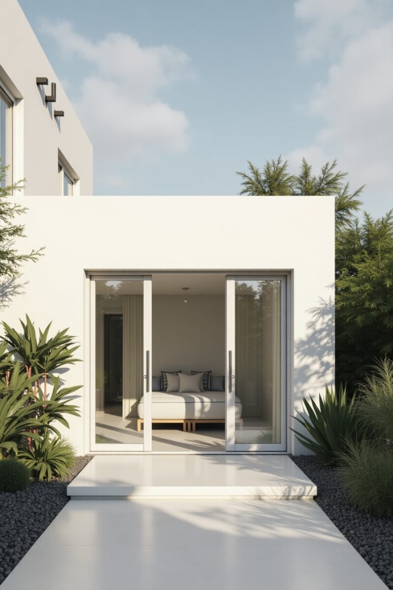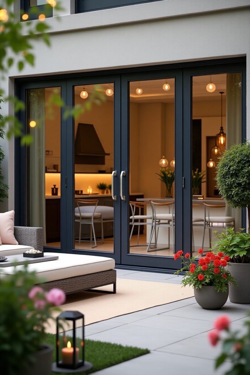 Consider pairing these doors with concrete patios or geometric tile patterns to complete the contemporary aesthetic.