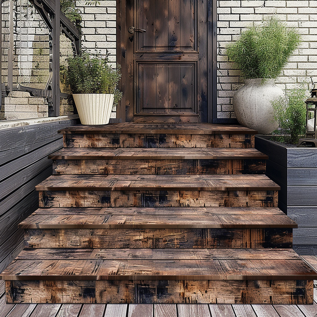 Rustic wood steps strike the perfect balance between natural style and long-lasting functionality.
