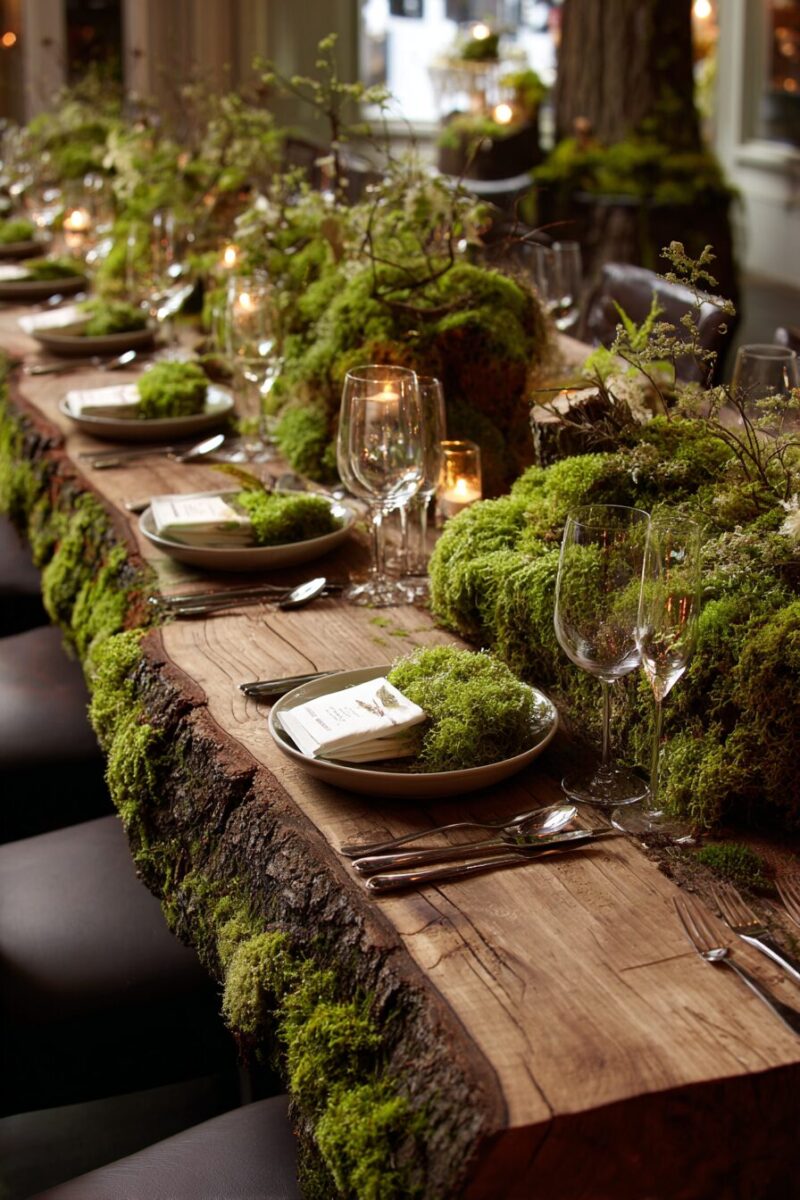 Transport your dining room into an enchanted forest by creating a lush moss runner that brings the magic of woodland floors directly to your table.