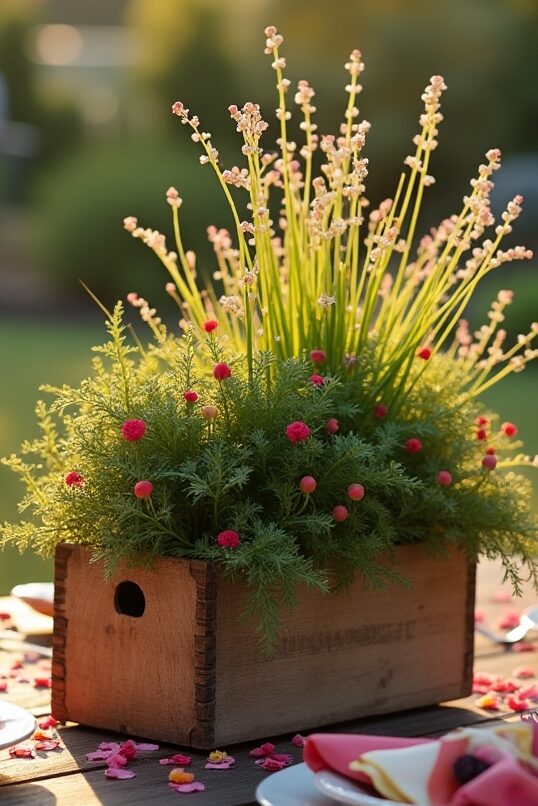 Create “growing” centerpieces by placing herb pots down the center of tables, encouraging guests to snip fresh additions for their meals or drinks.
