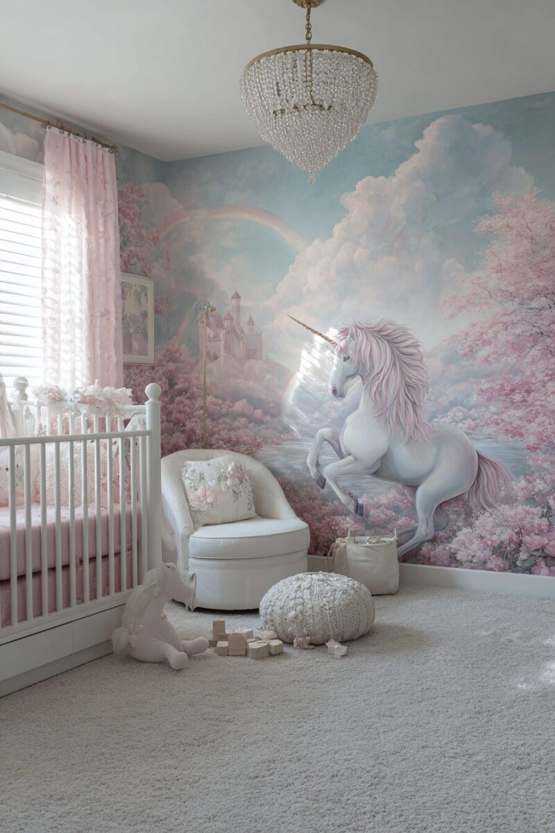 Step into a nursery where magic lives and unicorns roam, creating a space that will inspire your daughter’s imagination and sense of wonder for years to come.
