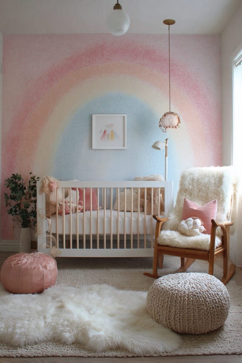 Imagine a nursery that captures all the happiness of a rainbow without being overwhelming or too bright for peaceful sleep.