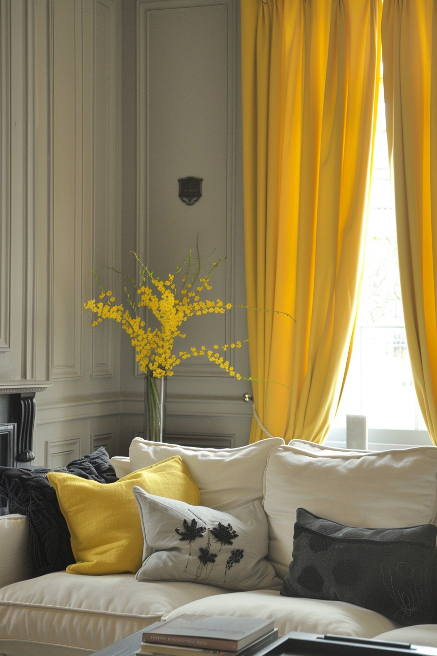 🏡 Start Creating FREE →Idea 12: Yellow Window Treatments and Gray Walls
