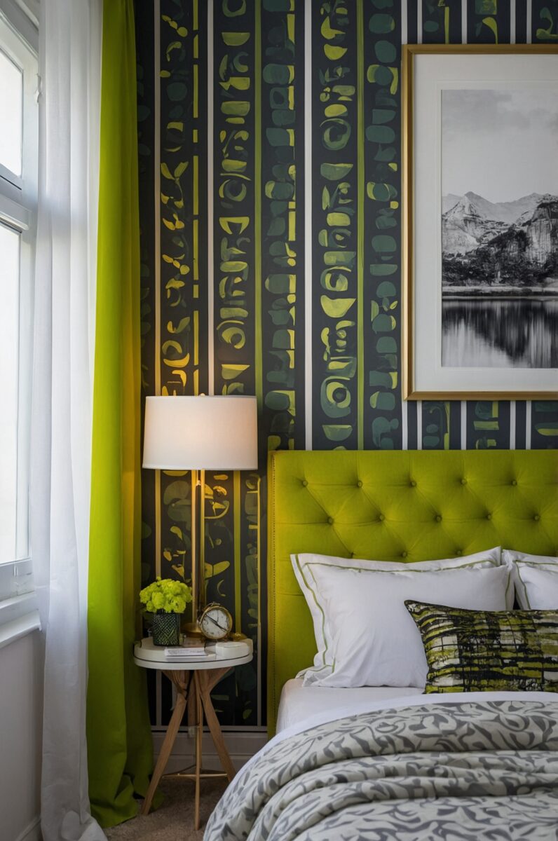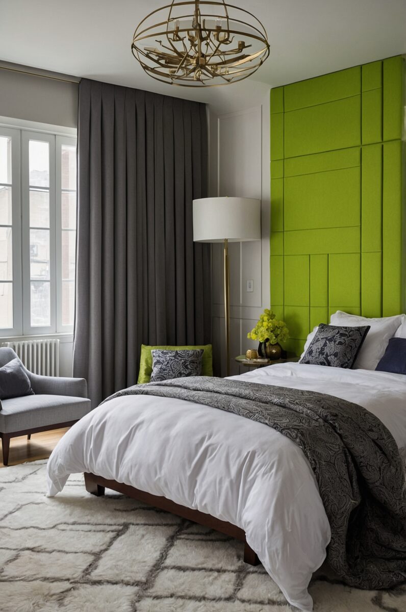 A strategic installation of lime green accent boards creates energetic focal points without overwhelming your entire bedroom.