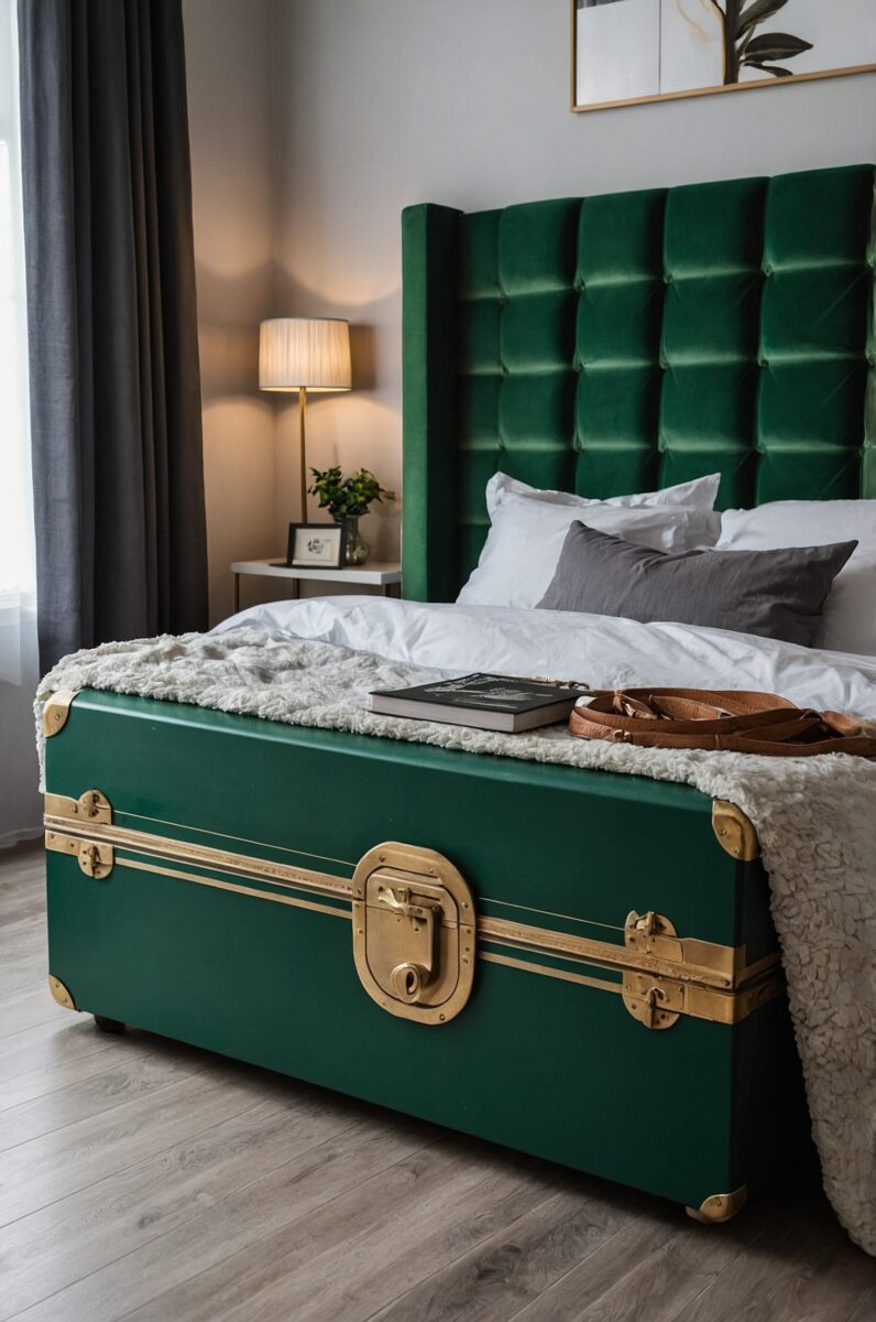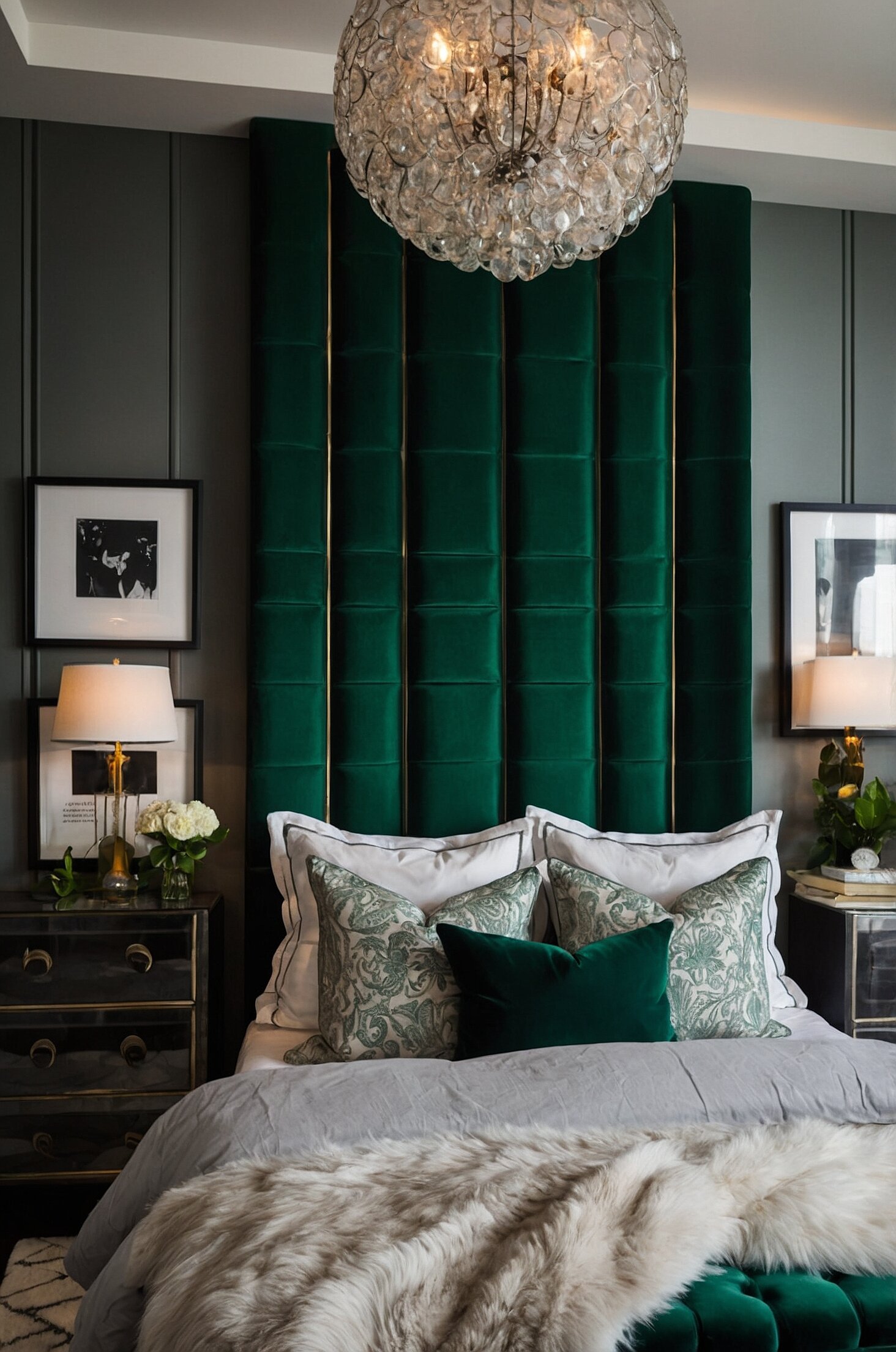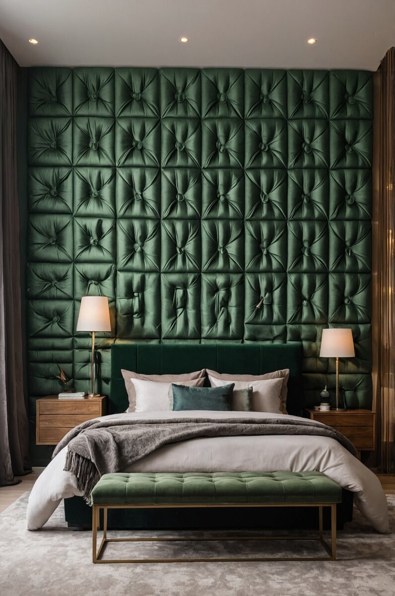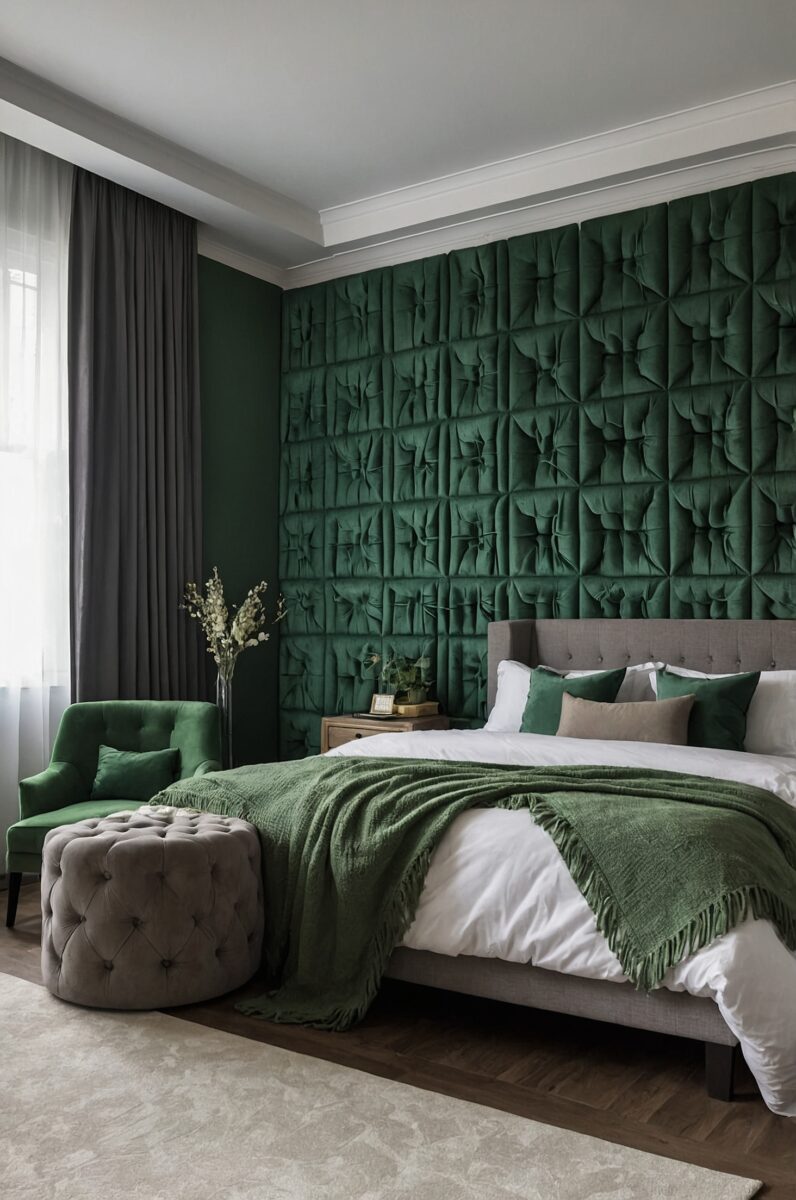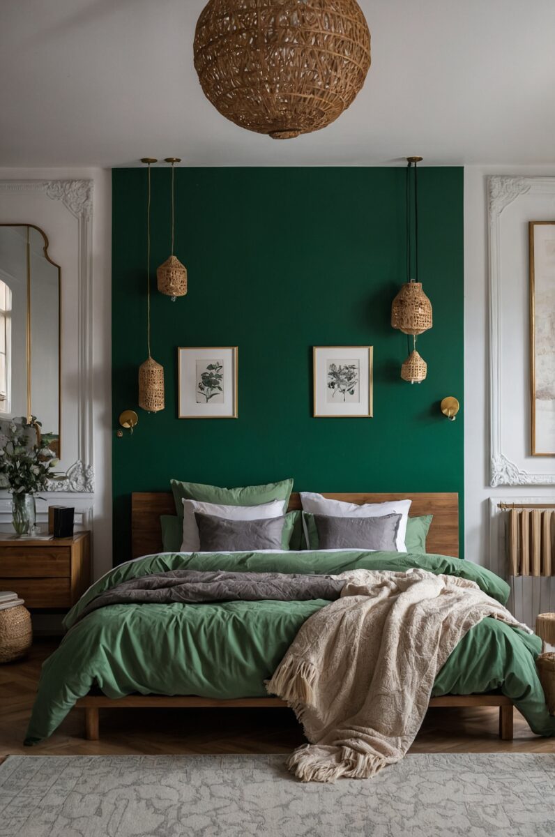 Nothing creates a focal point quite like a deep emerald green board wall behind your bed.