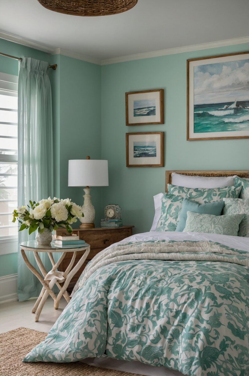 For a cohesive look, consider bringing small touches of mint green into your bedding or accessories.