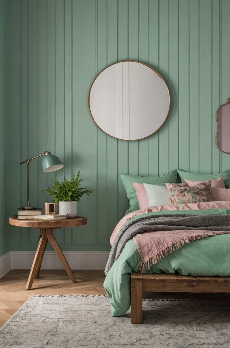 Combining two complementary shades of green creates sophisticated dimension that elevates your bedroom walls beyond a simple paint job.