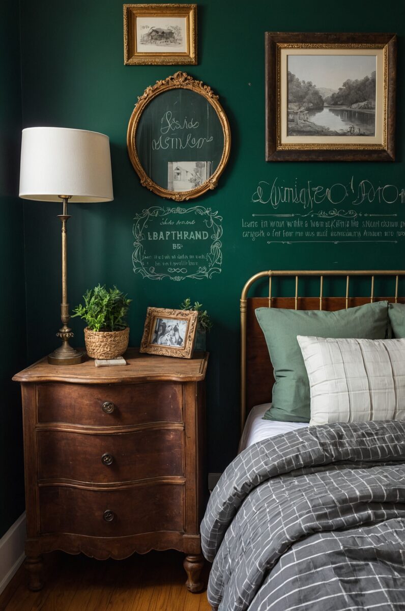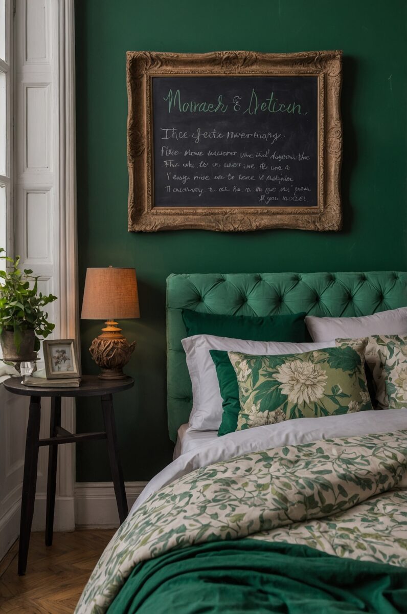 Green chalkboard walls bring nostalgic charm while adding practical functionality to your bedroom design.