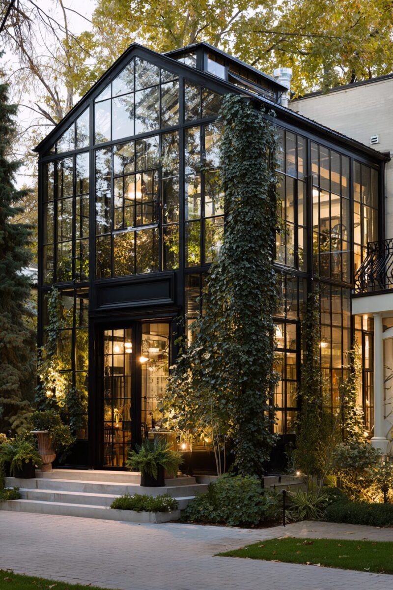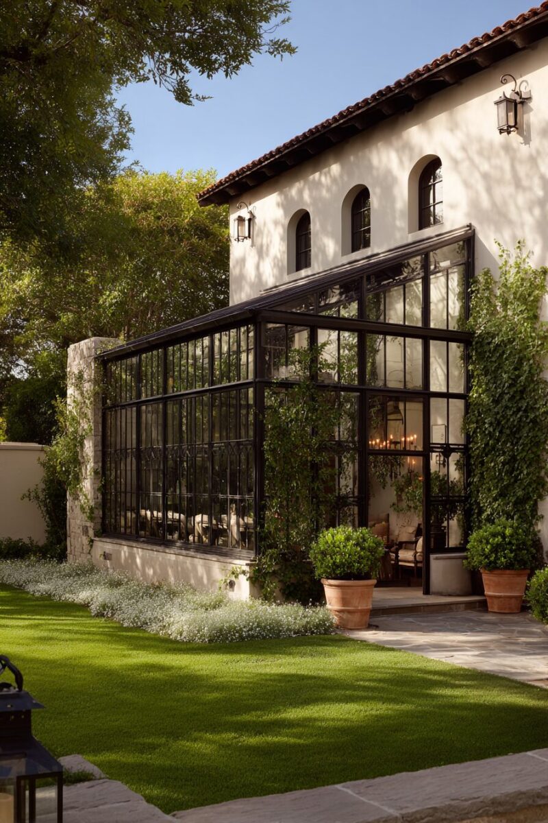 This design approach works particularly well for contemporary properties where the greenhouse can echo the main house’s modern architectural elements.