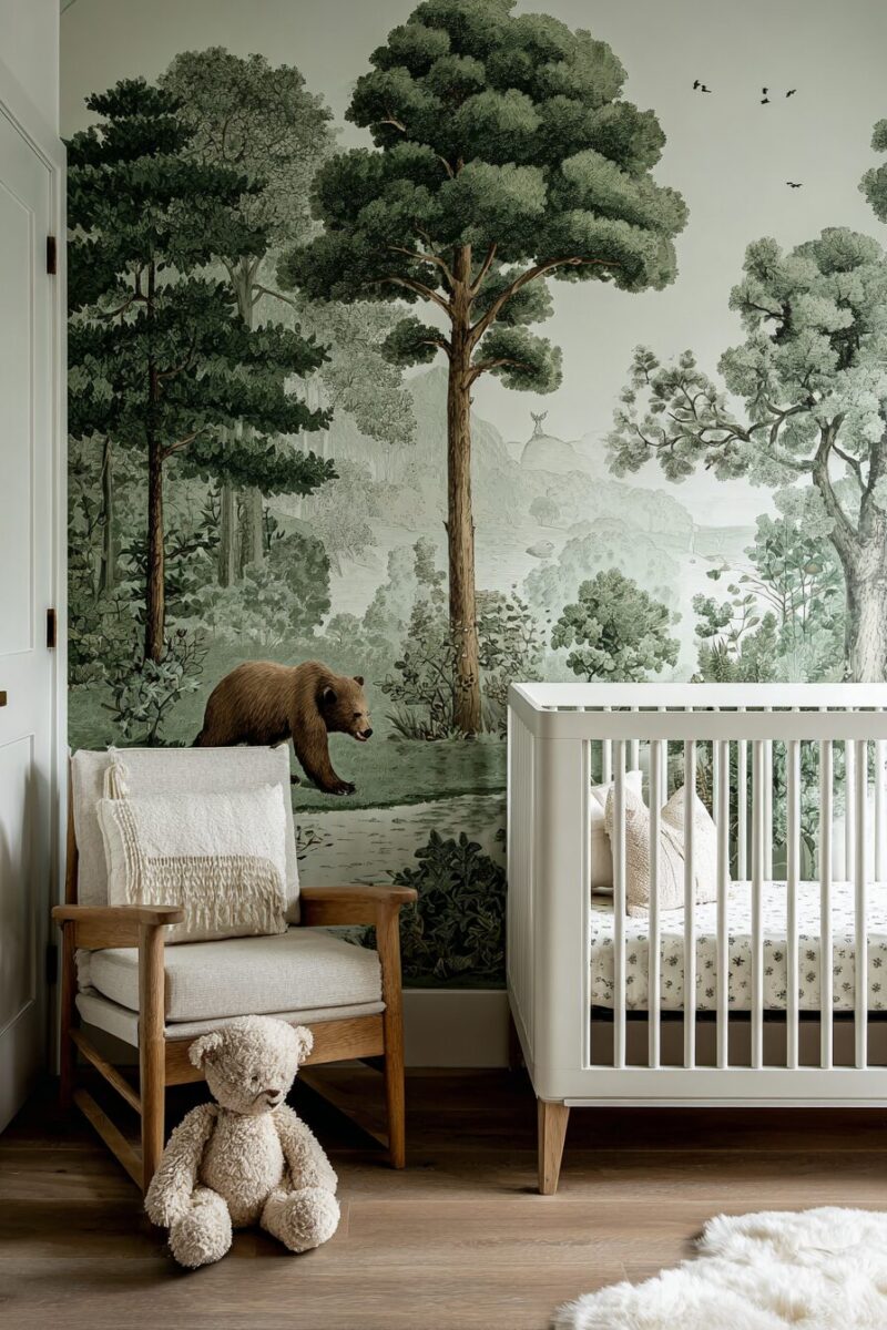 The storytelling potential of forest wallpaper grows with your child – what starts as a soothing backdrop for a sleeping infant becomes a rich landscape for imaginative play as they develop.