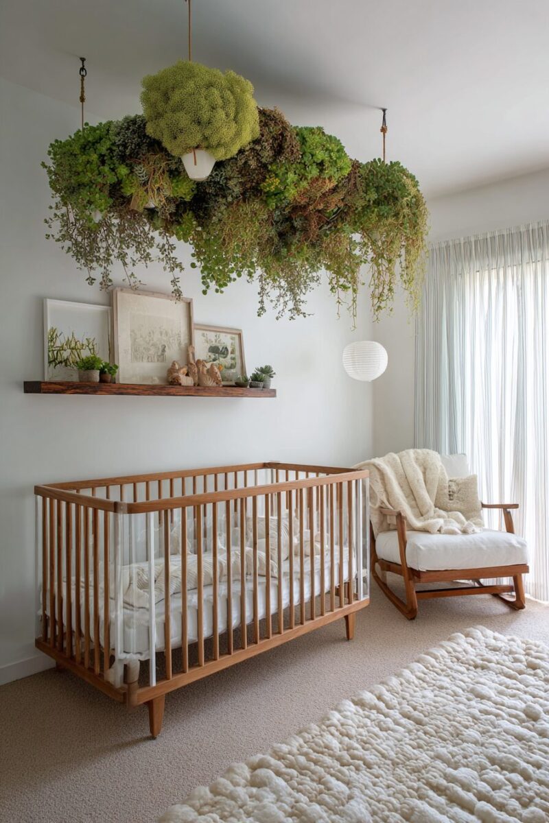 Suspended planters transform your nursery ceiling into a living art installation that captivates babies while adding natural beauty and air-purifying benefits to the room.