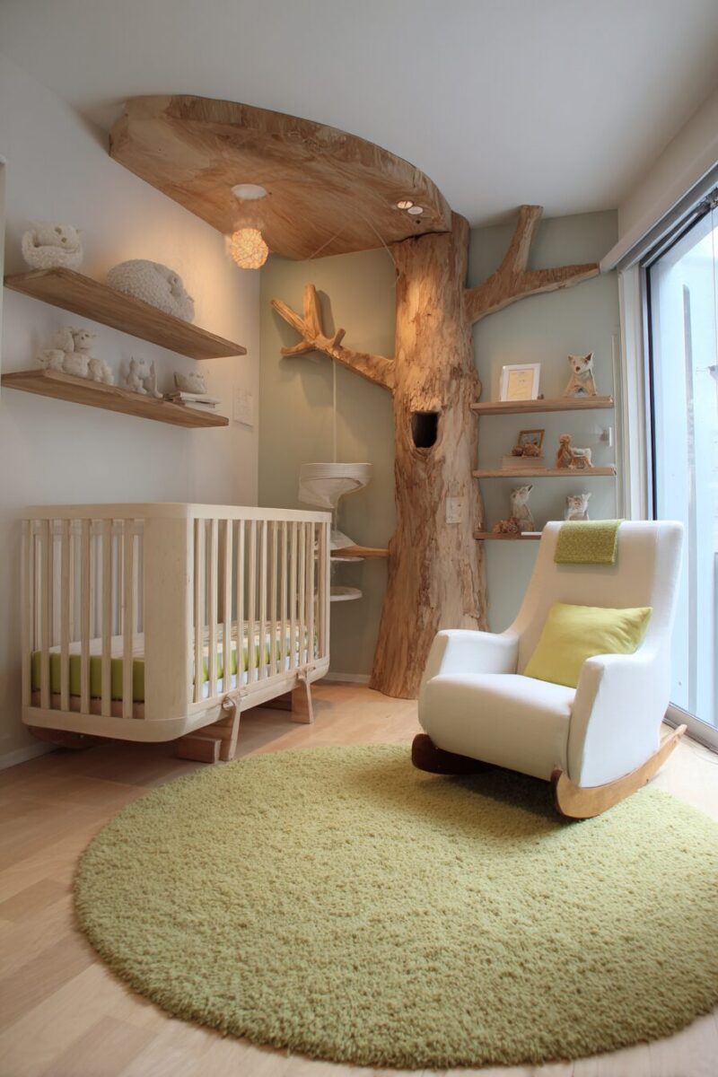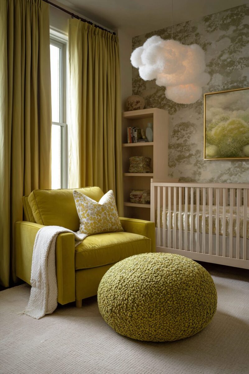 Layering various shades and textures of green fabrics throughout your nursery creates a rich, tactile environment that feels like being wrapped in nature’s embrace.