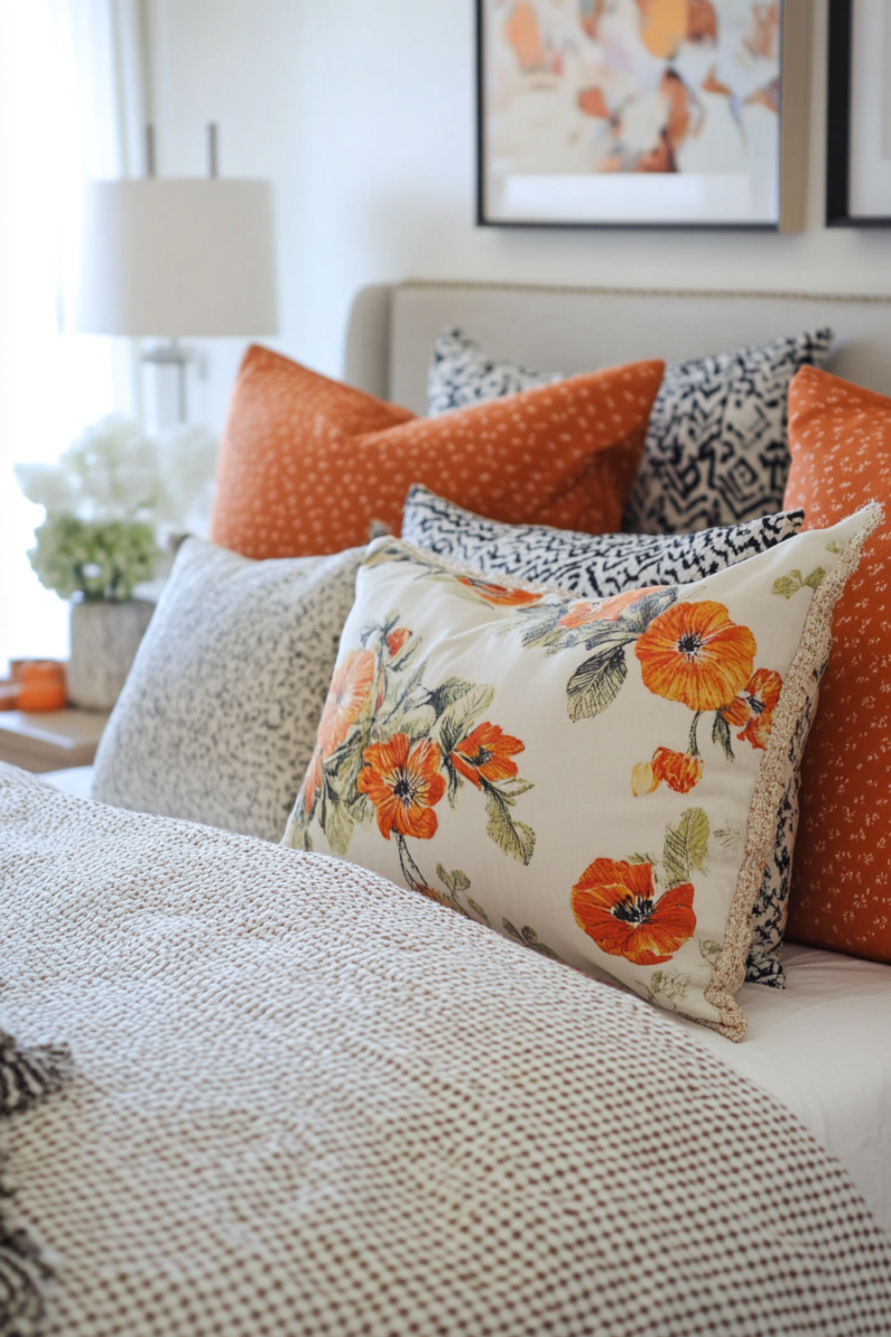 Play with a mix of solids, subtle prints, and maybe one bold accent pillow for a pop of personality.