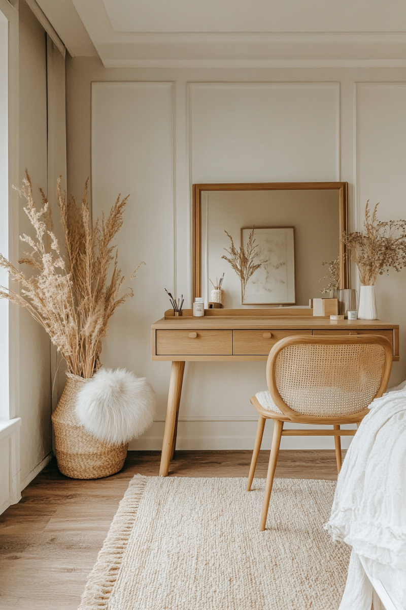 A vanity or dressing table isn’t just practical—it’s also a stylish addition that can make your bedroom feel more luxurious.