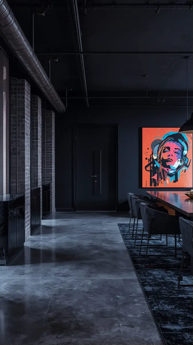 Grunge rooms embrace a palette dominated by dark colors such as black, charcoal, and deep burgundy, with colors like black, gray, and navy infusing the walls with a sense of brooding allure.