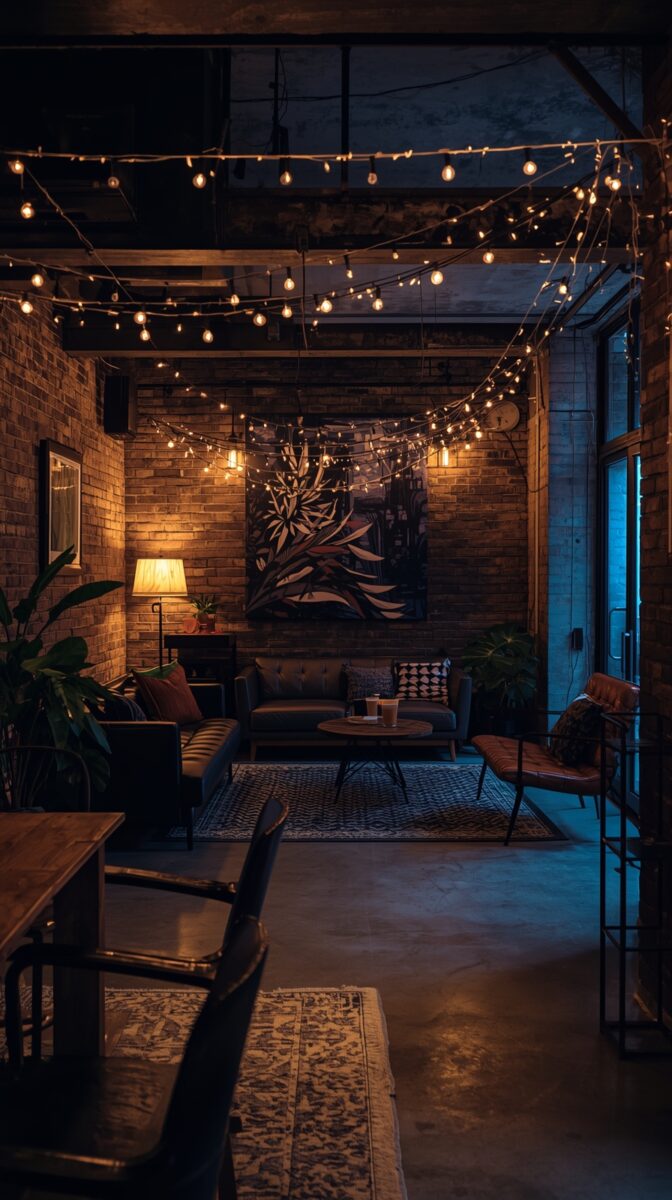 They give off this soft, golden glow that makes grunge spaces feel cozy instead of cold.
