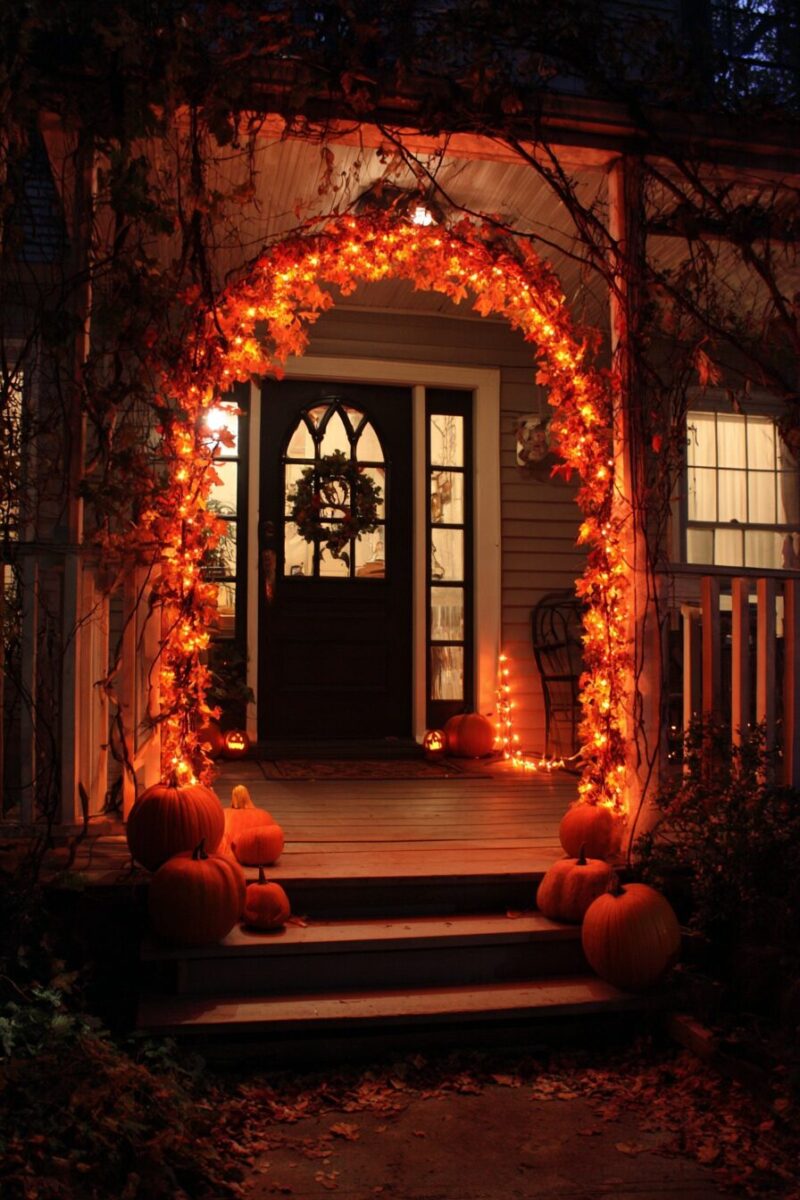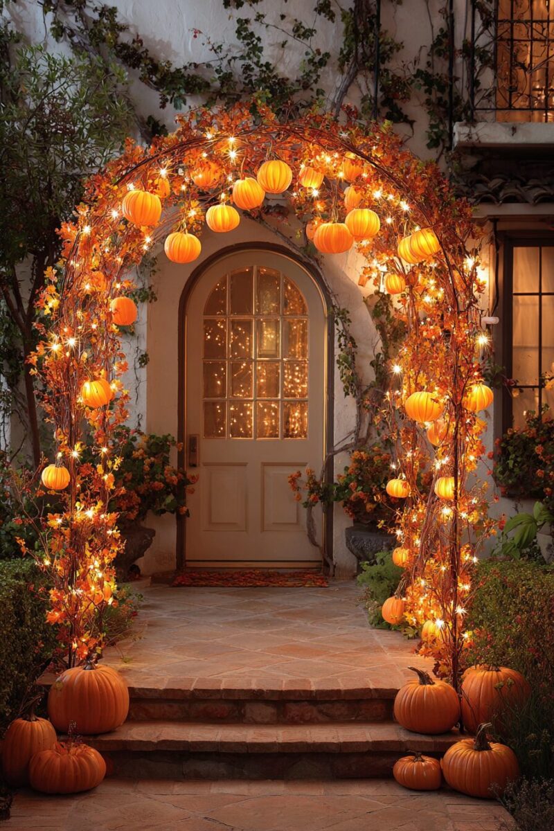 Glowing Pumpkin Vine Arch with Cascading Lights