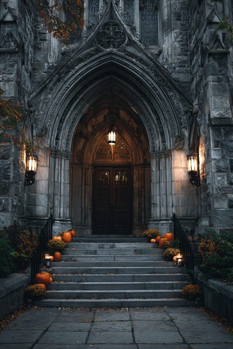 Towering spires and pointed arches transform your doorway into the entrance of an ancient cathedral where dark ceremonies once took place.