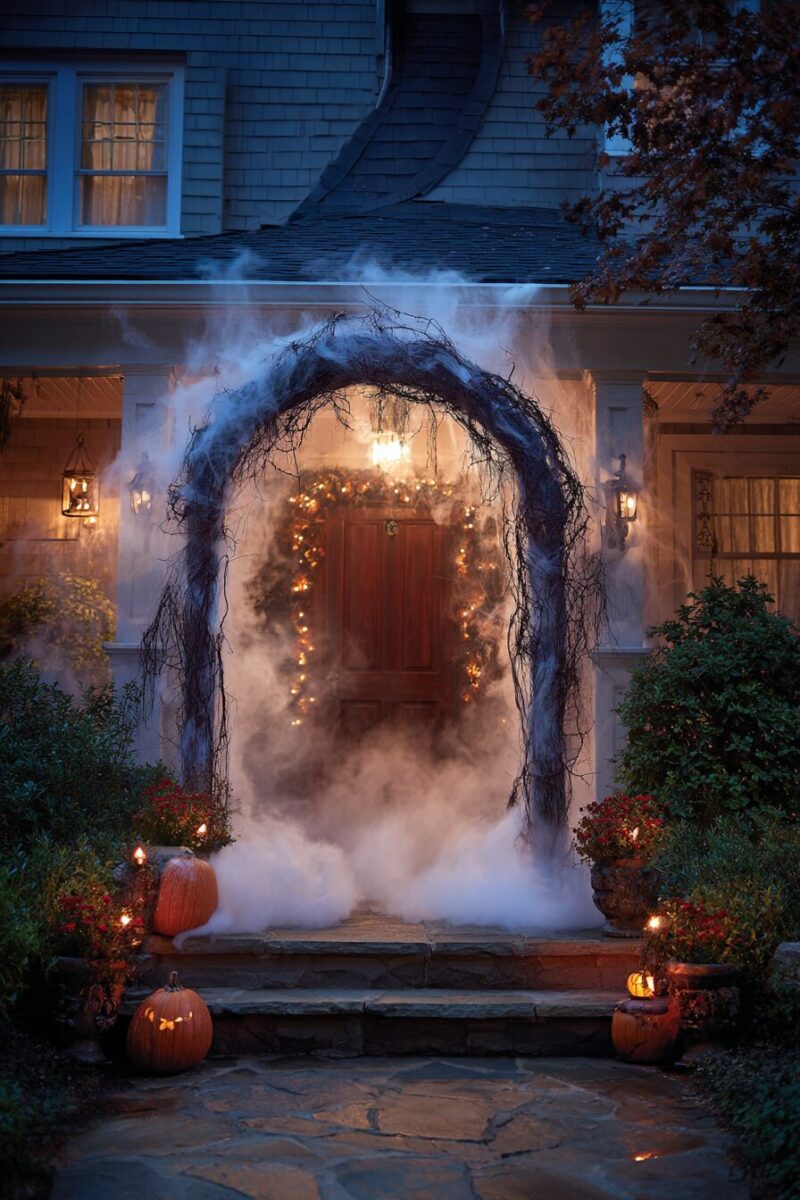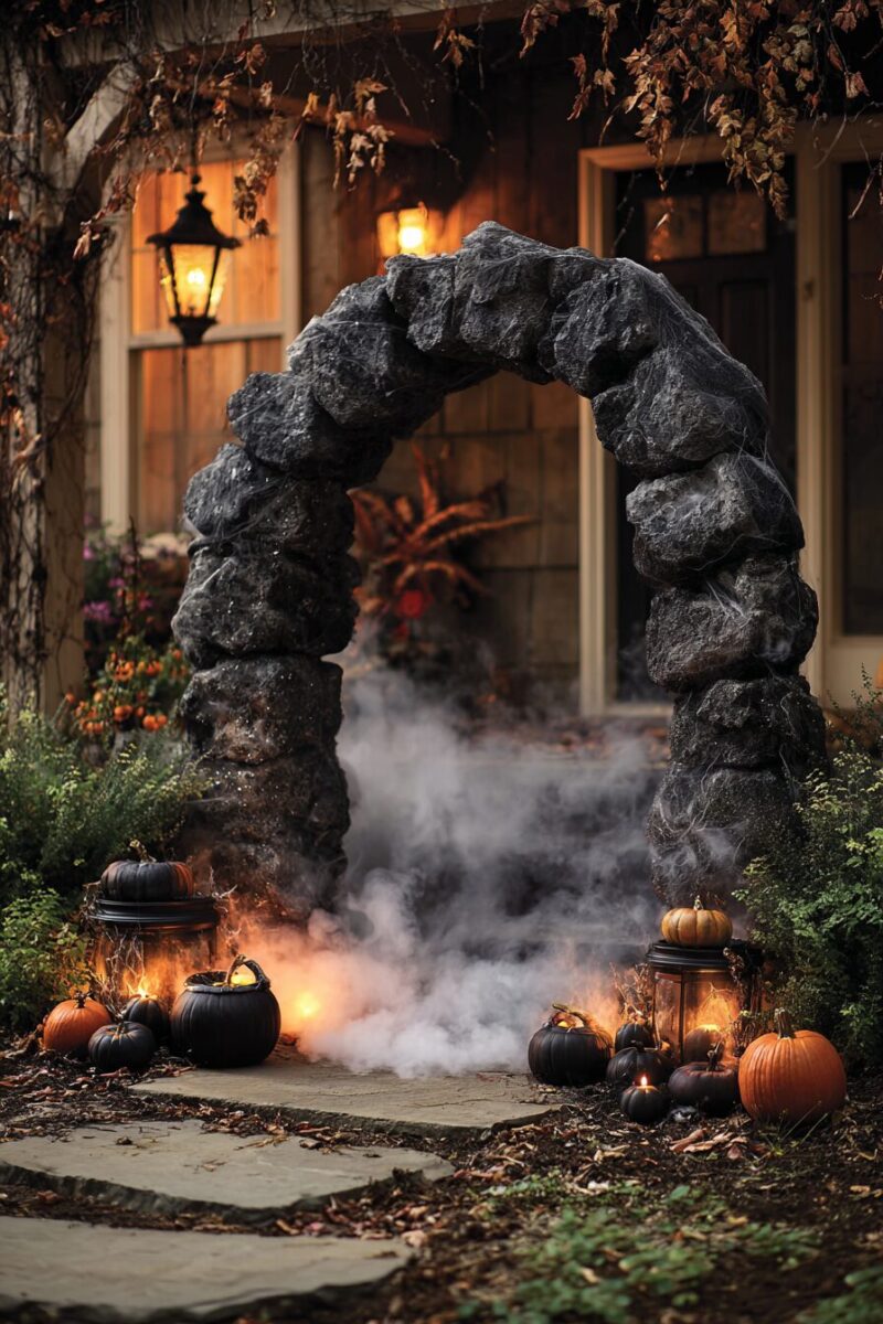These modern archway ideas blend cutting-edge technology with classic spooky elements to create Instagram-worthy entrances that’ll have trick-or-treaters lining up at your door.
