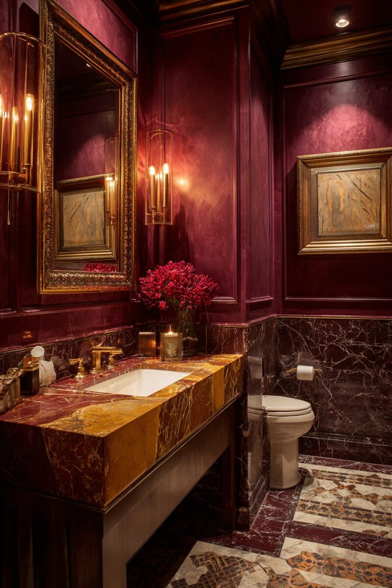 You’ll find that these colors look particularly striking in artificial light, making your powder room especially inviting for evening gatherings.