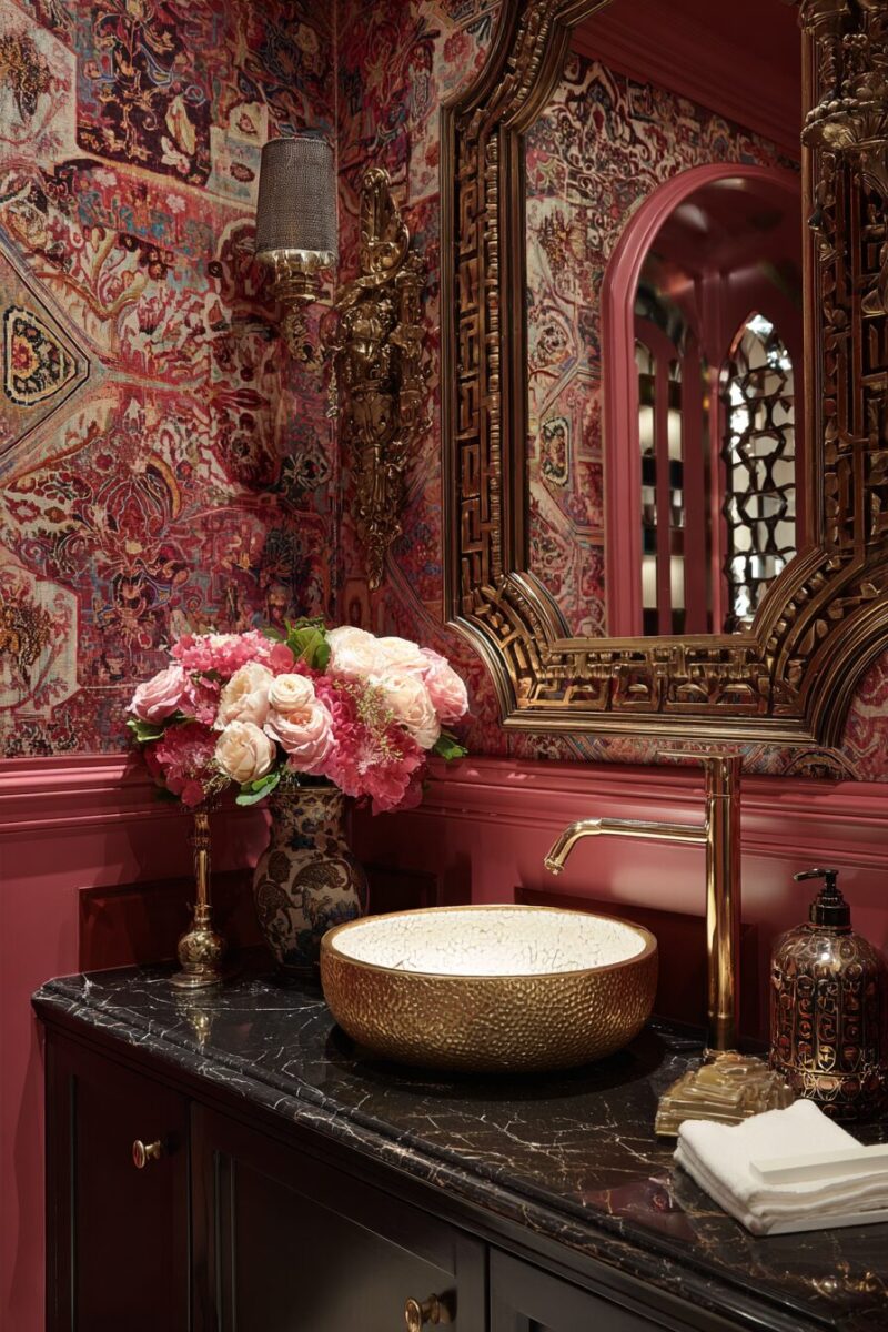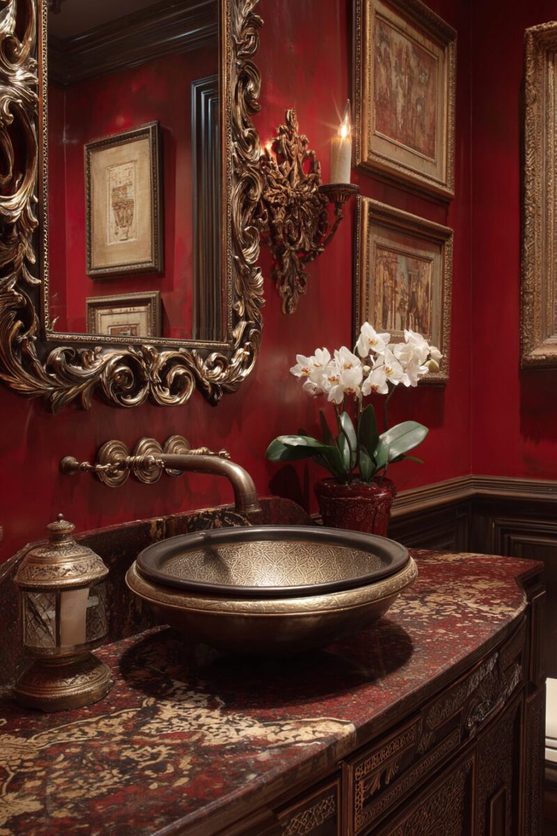 These art pieces serve as instant conversation starters when guests use your glamorous powder room.