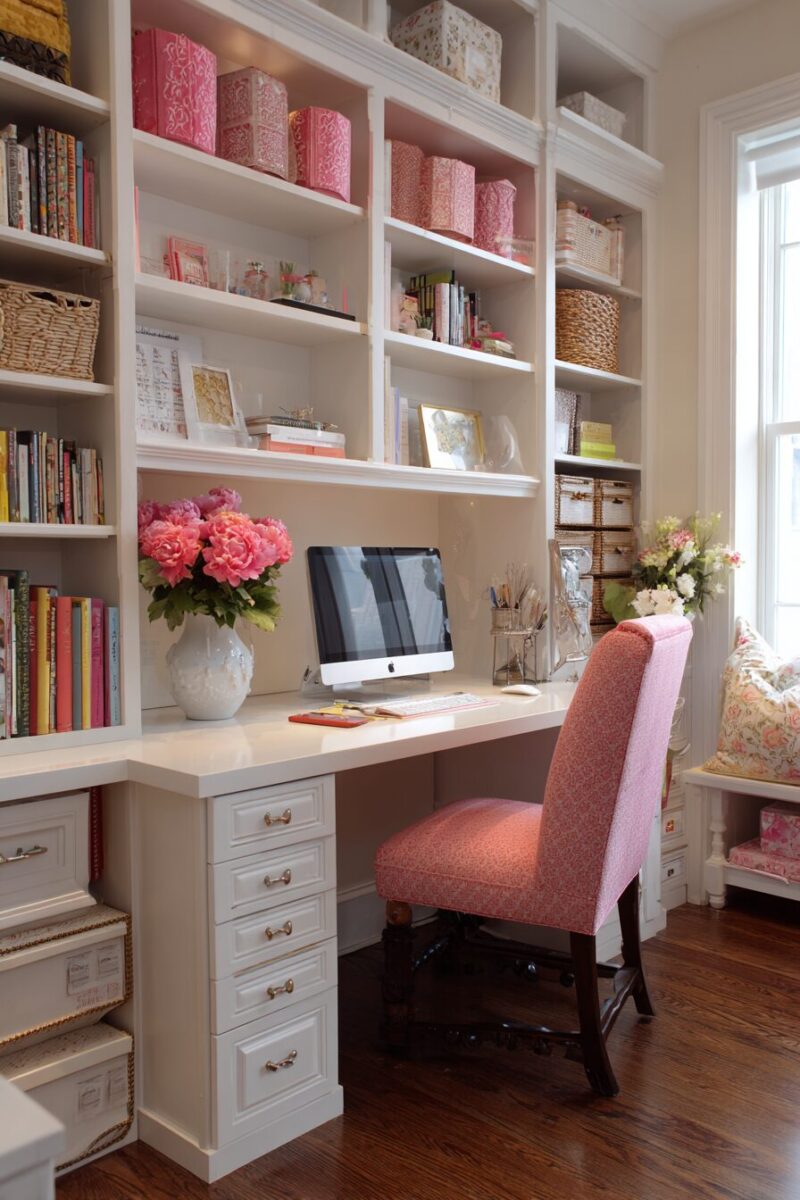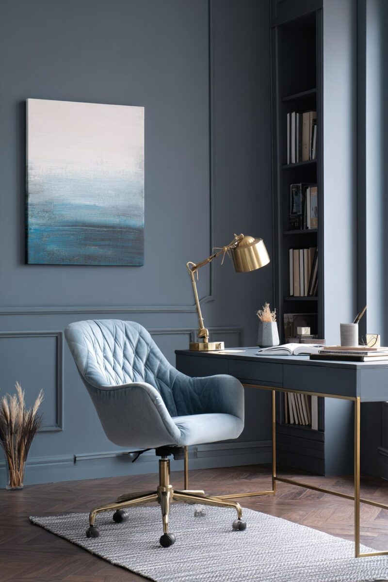 The color of your desk significantly impacts the room’s overall feel, with white creating airiness, dark woods adding sophistication, and painted finishes introducing personality.