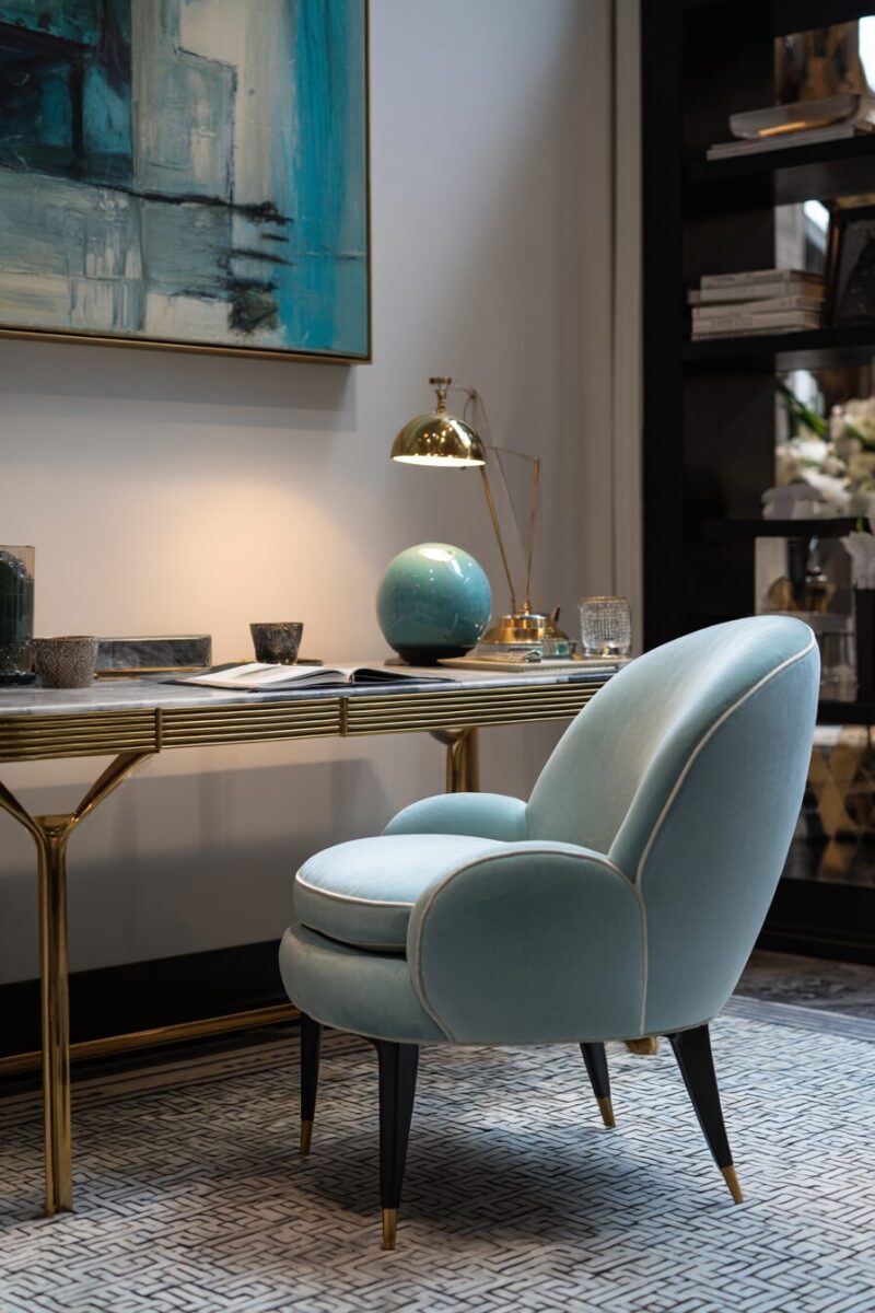 Accent chairs can serve as secondary seating for clients or reading spots that enhance your office’s residential feel.