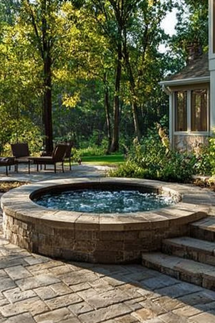 Individual paver stones make a brilliant hot tub pad option with tons of design flexibility.