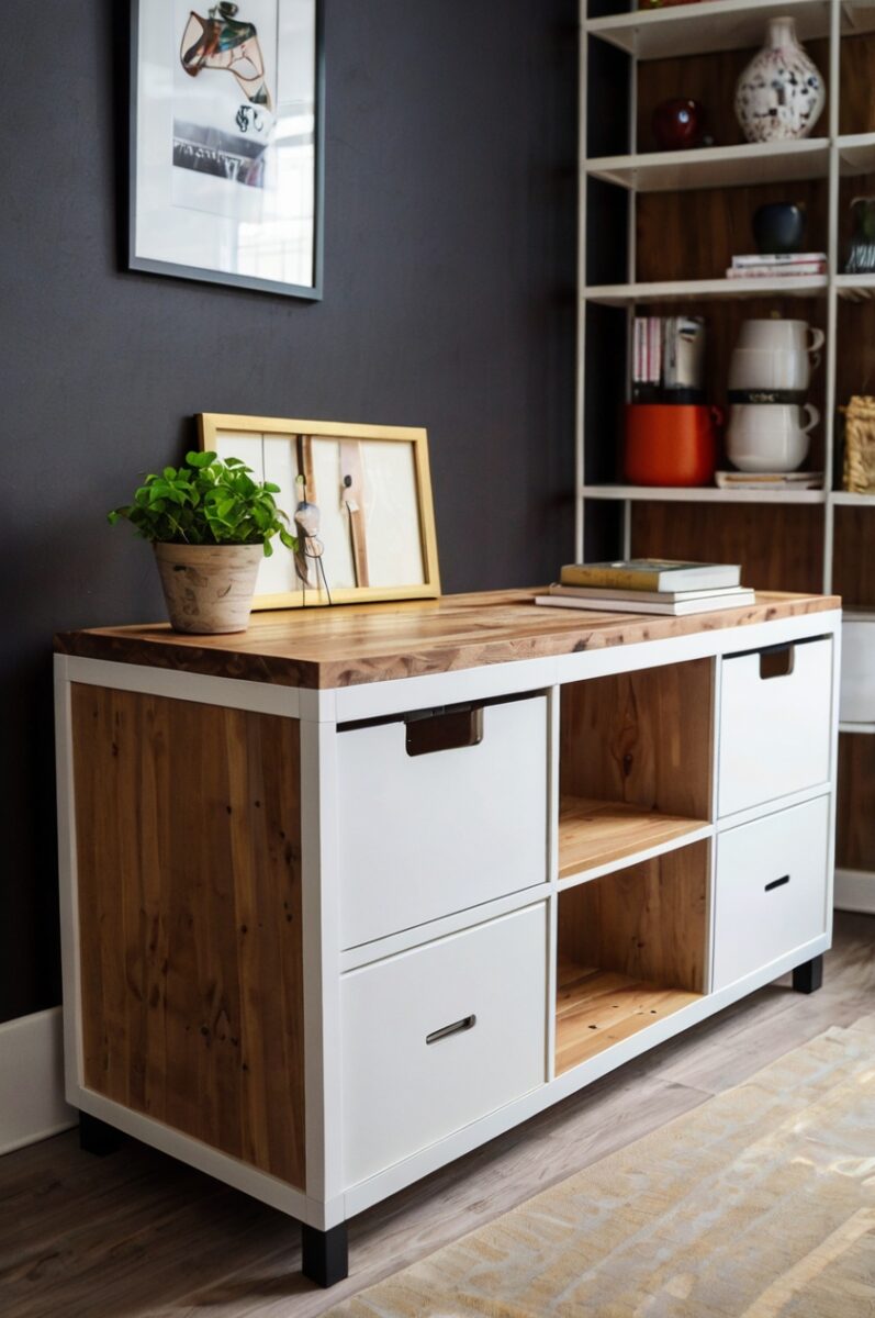 A custom wood top is one of the most effective ways to make your Kallax look like a piece of designer furniture.