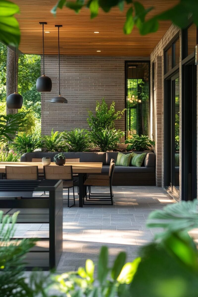 Add a small herb garden near the dining area that’s both decorative and functional, providing fresh ingredients just steps from your table.