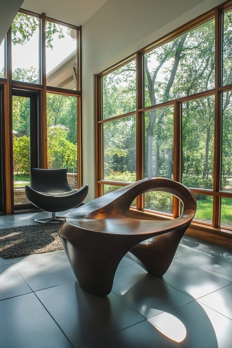 Choose sleek, low-profile furniture with simple silhouettes that won’t compete with the views outside your windows.