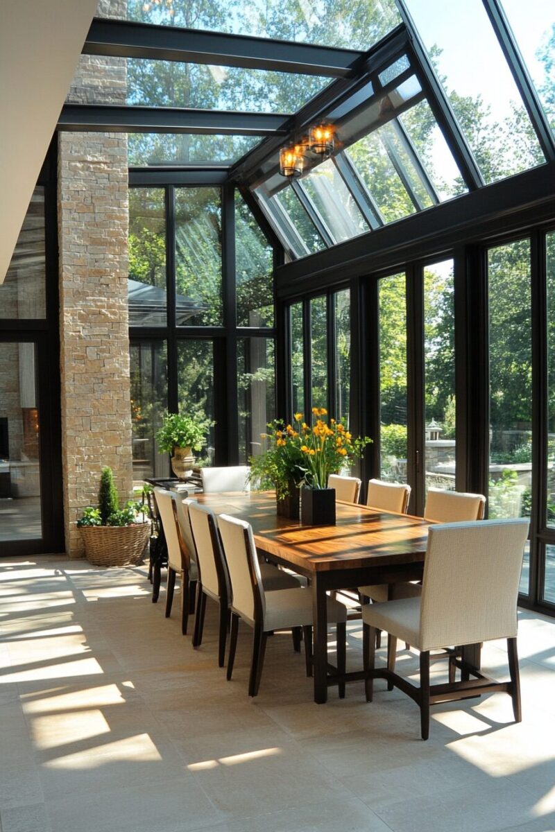 Dining surrounded by views of nature elevates everyday meals to special occasions, creating a space that feels like permanent outdoor dining without the bugs or weather concerns.