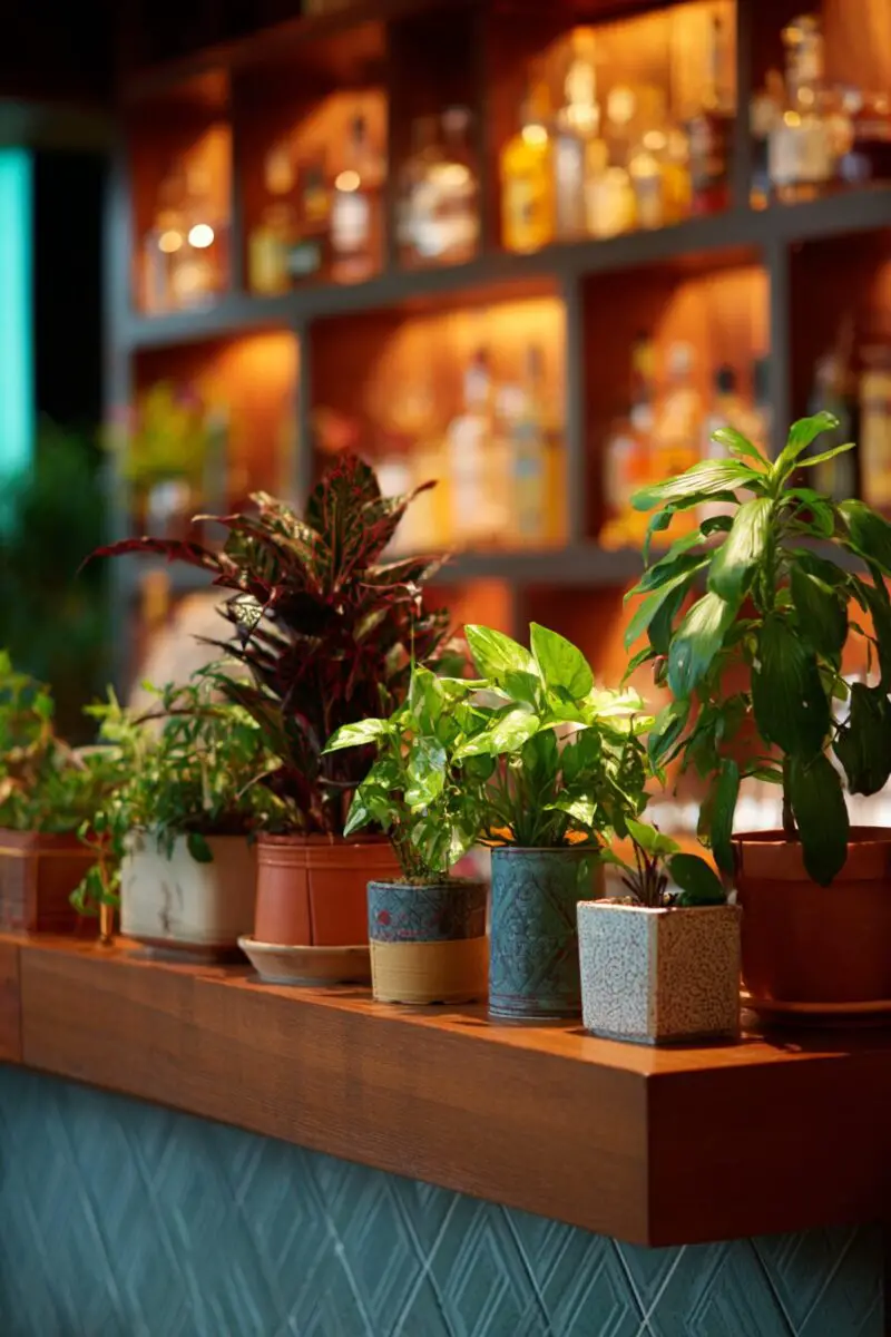 Living plants add the perfect organic element to balance all the rich, heavy materials in your jazz bar aesthetic.