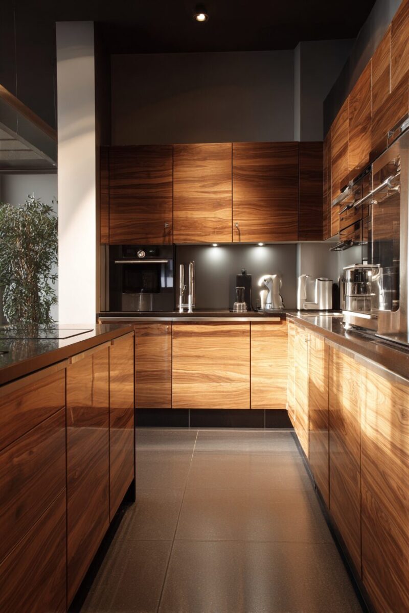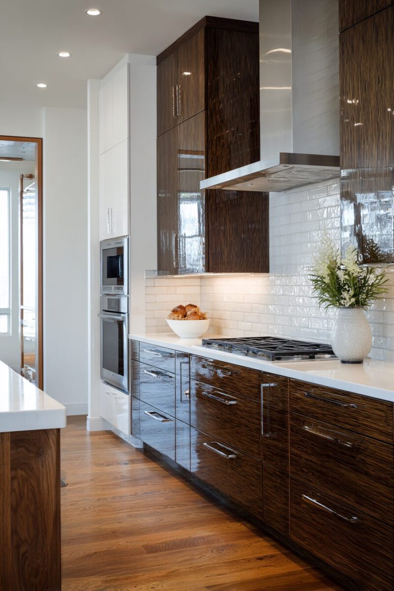 These trendy backsplash ideas prove that brown cabinetry can be the foundation for absolutely stunning modern kitchens that feel both current and timeless.