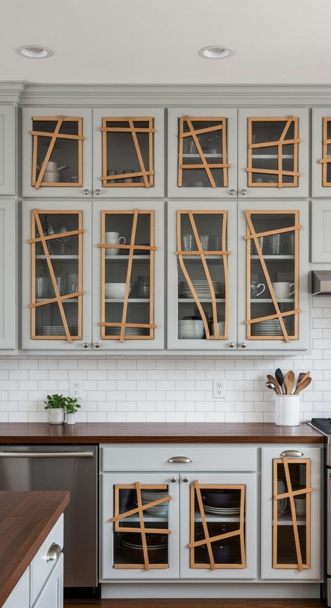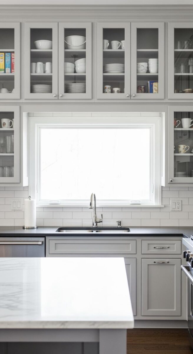 I had two glass cabinets flanking my range, and they had these chunky mullions that felt more country cottage than the clean, modern vibe I wanted.