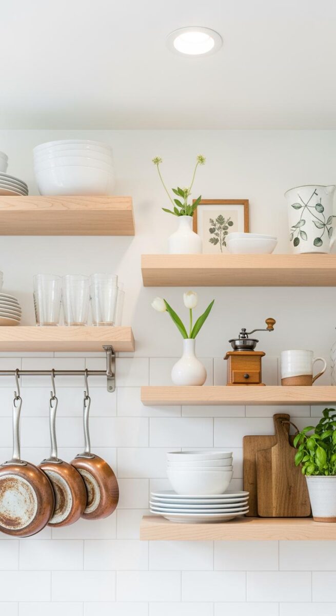 Open shelving should feel curated, intentional, and functional.