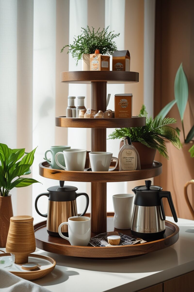 A tiered tray is the three-dimensional organizing hack that brings order to your coffee supplies without spreading them across your entire counter.