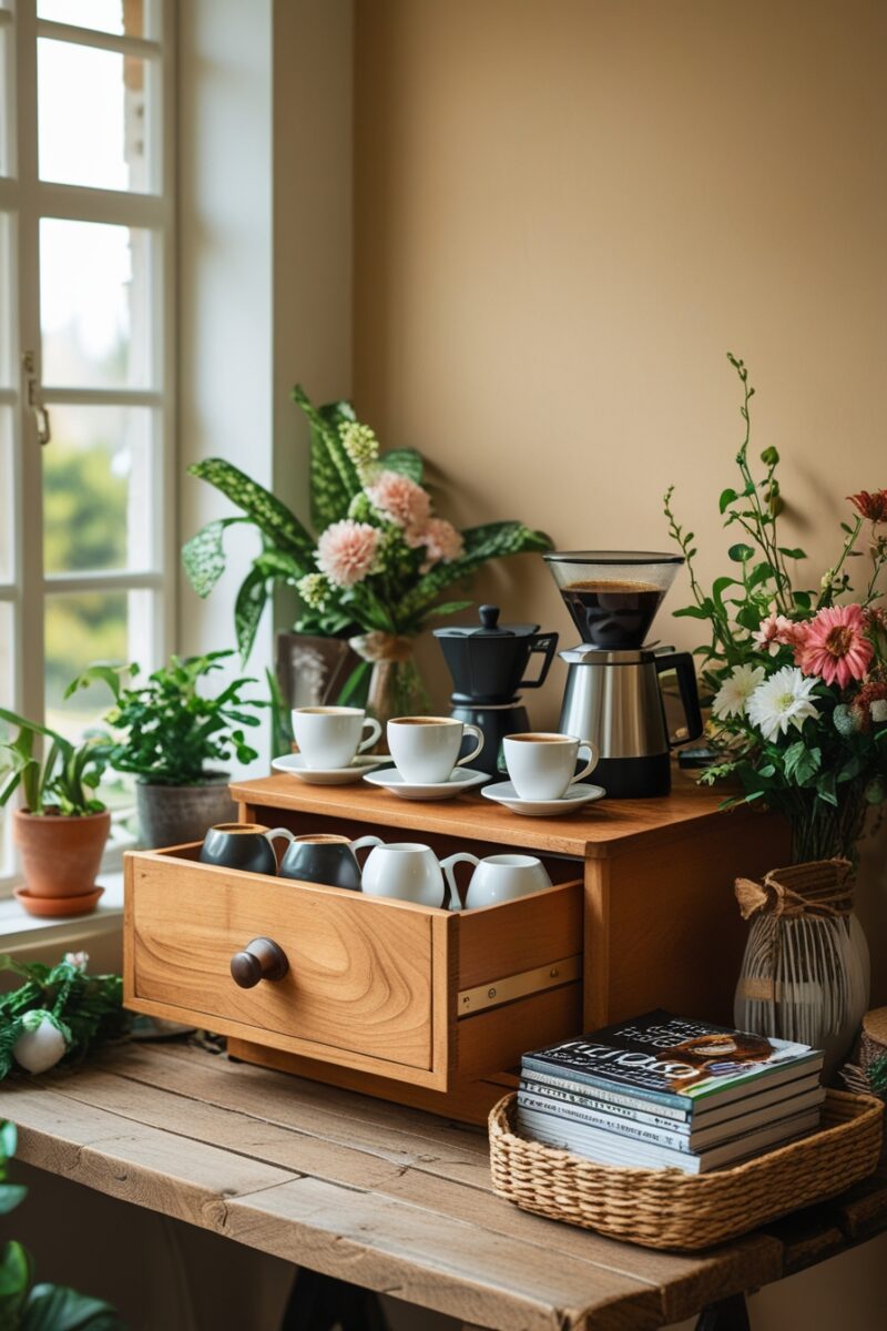 These ten ideas prove that even the tiniest kitchen can accommodate a functional, beautiful coffee setup that makes your daily routine genuinely enjoyable.