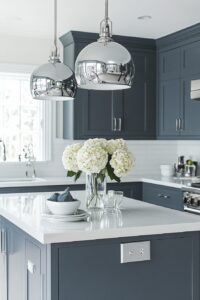 Navy blue works particularly well in larger kitchens or spaces with plenty of natural light.